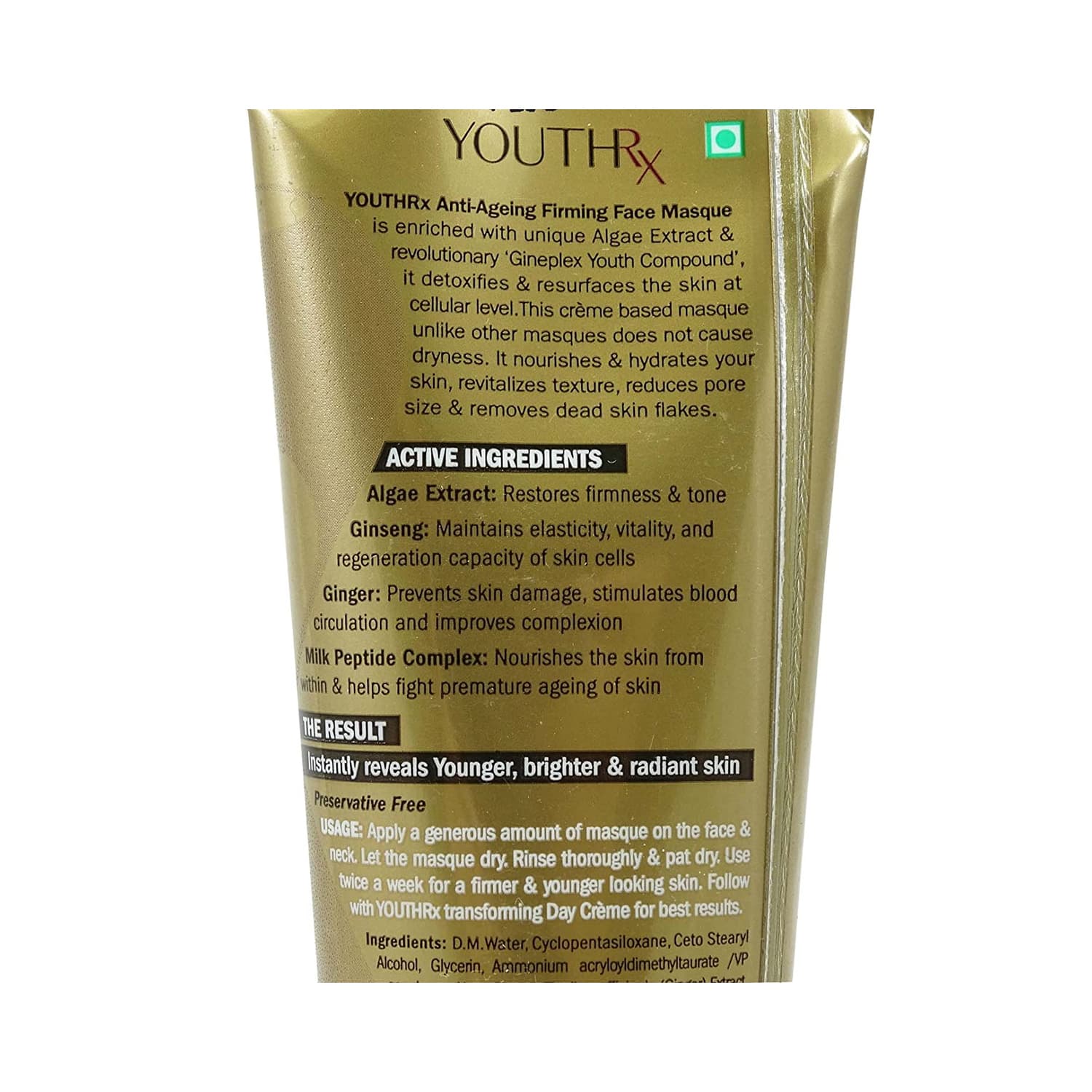 Key Ingredients:Ginger and ginseng extract: Maintain skin's elasticityGineplex youth complex: Lifts and firms up the skinAlgae extract: Detoxifies and encourages the cell renewal process