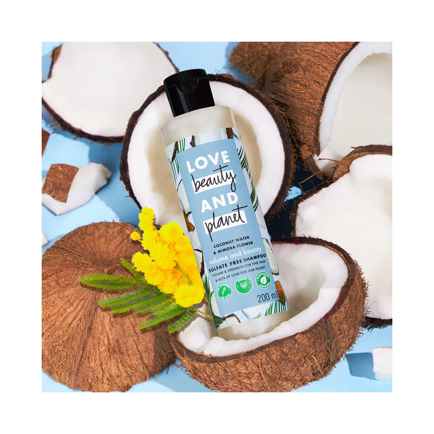Get healthy, thick, and bouncy hair with the Love Beauty & Planet Coconut Water And Mimosa Flower Volume And Bounty Shampoo (200ml). This volumizing shampoo is the perfect solution to all hair-thinning woes. Also, this hydrating shampoo contains coconut water and oil to moisturize dry, frizzy locks while adding a boost of volume and nourishment. Plus, the energizing scent of mimosa flowers in this Love Beauty and Planet shampoo will leave you feeling refreshed.Key Features & Benefits:Formulated with coconut water to nourish and volumize the hairInfused with organic coconut oil to hydrate the hairHas an energizing mimosa flower fragrance to freshen up the hair100% vegan shampoo is free from sulfates, parabens, and dyes for safe useKey Ingredients:Natural coconut water: Moisturizes the hairMimosa flowers: Add a citrusy scent to the hairCoconut oil: Nourishes the hair and adds moistureAll Ingredients:Water, Sodium Methyl Cocoyl Taurate, Cocamidopropyl Betaine, Dimethiconol (And) Trideceth-10 (And) Tea Dodecylbenzenesulfonate, Perfume, L-Lysine Monohydrochloride, Cocos Nucifera (Coconut) Oil, Cocos Nucifera (Coconut) Water, Acacia Decurrens Flower Extract, Stearamidopropyl Dimethylamine, Glycol Distearate, Laureth-4, Citric Acid Monohydrate, Sodium Benzoate, Carbomer, Sodium Chloride, Polyquaternium-10, Ppg-9, Disodium Edta, Hexyl Cinnamal, Limonene, Linalool. Plant Based Ingredients.How to Use:First, wet your hair thoroughly. Then, squeeze the required amount of shampoo on your palm and create a lather by rubbing your hands together. Next, apply the lathered shampoo on your scalp generously. Last, rinse your hair with water and follow by using a conditioner.About the Brand:Launched in 2018 by Piyush Jain and Sonika Malhotra, Love Beauty and Planet is a skin and haircare company under Unilever. They believe that looking good and doing good should go hand-in-hand and that the only way to serve their consumers is by delivering effective beauty results while showing respect to the planet by reducing their carbon footprint. They offer fantastic beauty products that they would love to use themselves. Their wide range of cruelty-free and vegan products includes shampoos, body washes, oils, scrubs, cleansers, and lots more.Check out more Love Beauty & Planet Shampoo options here, or browse through tokocart's full range of Shampoo from top global brands.You can also explore other products from the world of Love Beauty & Planet here on tokocart.