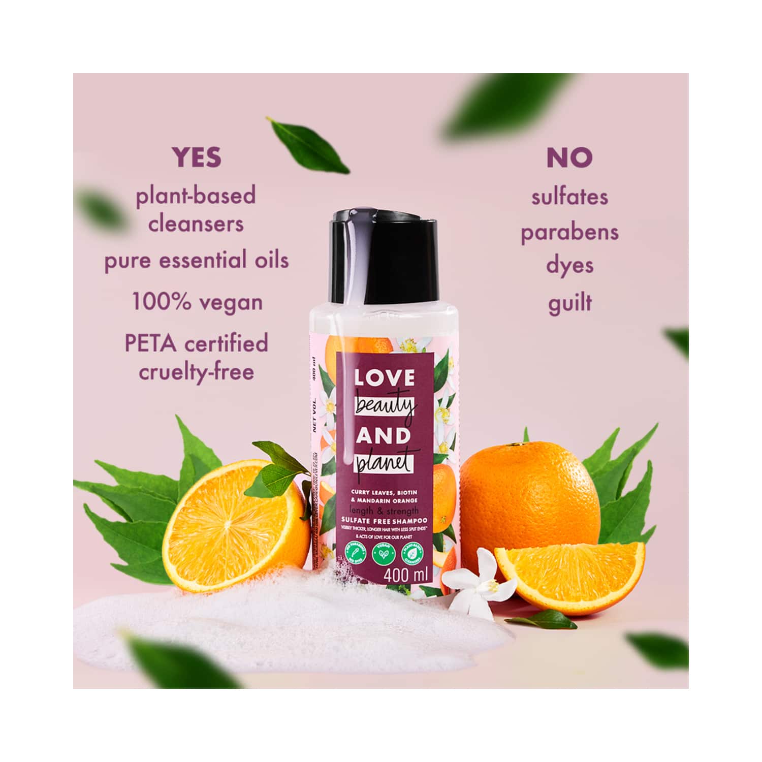 Let the Love Beauty & Planet Curry Leaves Biotin & Mandarin Shampoo For Long & Strong Hair (400ml) help you achieve thick, long locks. This hair-strengthening shampoo has curry leaves to moisturize the scalp and vegan biotin to fortify the hair and promote growth. Also, this Love Beauty and Planet moisturizing shampoo contains organic coconut oil to hydrate the hair and reduce split ends. Additionally, it features a citrusy scent of mandarin orange oil to refresh the hair.Key Features & Benefits:Infused with curry leaves to moisturize the scalp and boost hair growthContains vegan biotin to strengthen the hairMade with organic coconut oil to hydrate the hairFeatures a citrusy scent of mandarin orange oil to freshen up the hairKey Ingredients:Curry leaf extracts: Have antioxidants and proteins, moisturize the scalp, and promote hair growthVegan biotin: Has vitamin B to strengthen the hairCoconut oil: Nourishes the hair and adds moistureAll Ingredients:Water, Sodium Methyl Cocoyl Taurate, Cocamidopropyl Betaine, Dimethiconol (And) Trideceth-10 (And) Tea Dodecylbenzenesulfonate, Perfume, L-Lysine Monohydrochloride, Cocos Nucifera (Coconut) Oil, Murraya Koenigii (Curry) Leaf Extract, Biotin, Citrus Nobilis (Mandarin Orange) Peel Oil, Stearamidopropyl Dimethylamine, Glycol Distearate, Laureth-4, Citric Acid Monohydrate, Sodium Benzoate, Carbomer, Sodium Chloride, Polyquaternium-10, Ppg-9, Disodium Edta, Benzyl Salicylate, Hexyl Cinnamal, Limonene, Linalool.How to Use:First, wet your hair thoroughly. Then, squeeze the required amount of shampoo on your palm and create a lather by rubbing your hands together. Next, apply the lathered shampoo on your scalp generously. Last, rinse your hair with water and follow by using a conditioner.About the Brand:Launched in 2018 by Piyush Jain and Sonika Malhotra, Love Beauty and Planet is a skin and haircare company under Unilever. They believe that looking good and doing good should go hand-in-hand and that the only way to serve their consumers is by delivering effective beauty results while showing respect to the planet by reducing their carbon footprint. They offer fantastic beauty products that they would love to use themselves. Their wide range of cruelty-free and vegan products includes shampoos, body washes, oils, scrubs, cleansers, and lots more.Check out more Love Beauty & Planet Shampoo options here, or browse through tokocart's full range of Shampoo from top global brands.You can also explore other products from the world of Love Beauty & Planet here on tokocart.