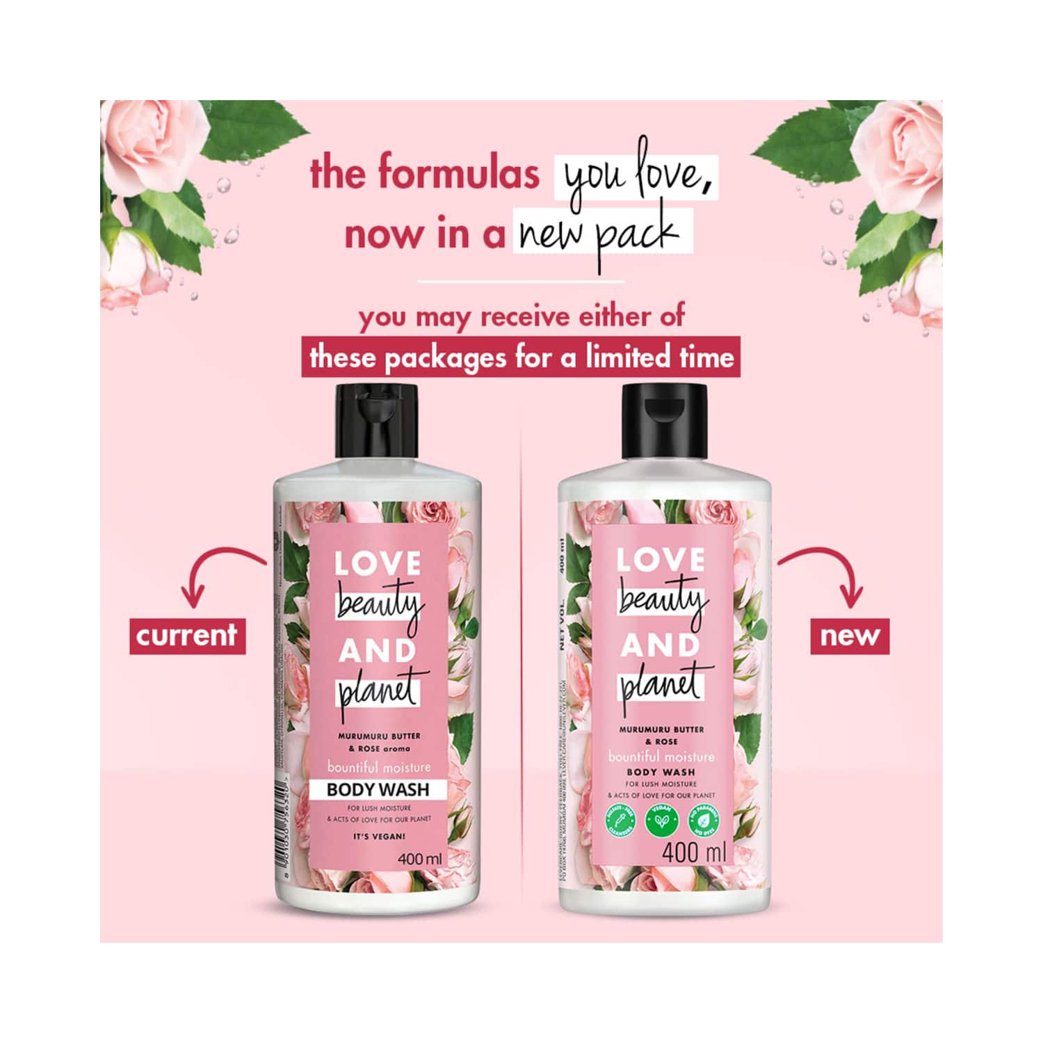Love Beauty & Planet Murumuru Butter and Rose Moisturising Creme Body Wash (400 ml)