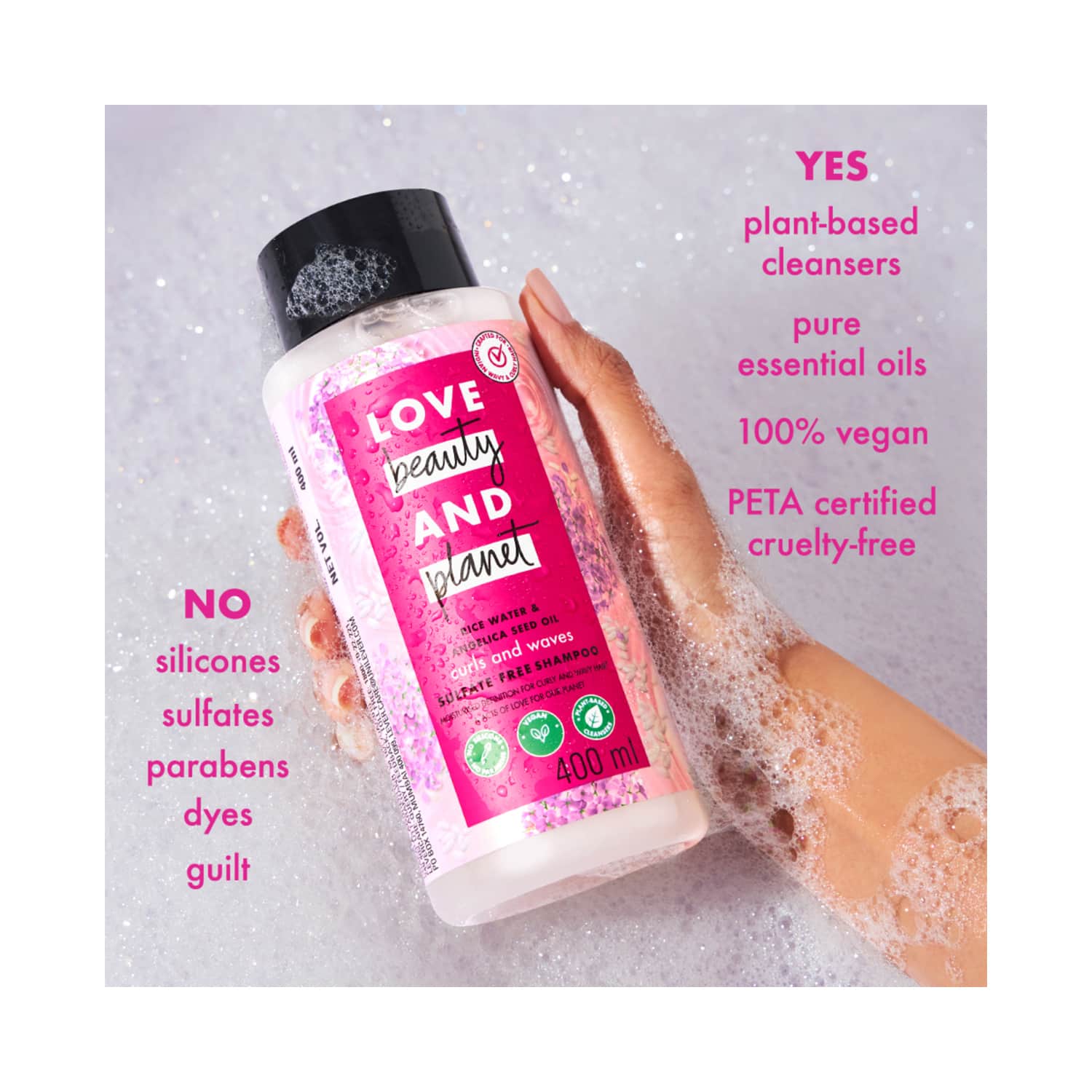 Love Beauty & Planet Rice Water & Angelica Seed Oil Shampoo for Frizz Free Curly Wavy Hair (400 ml)