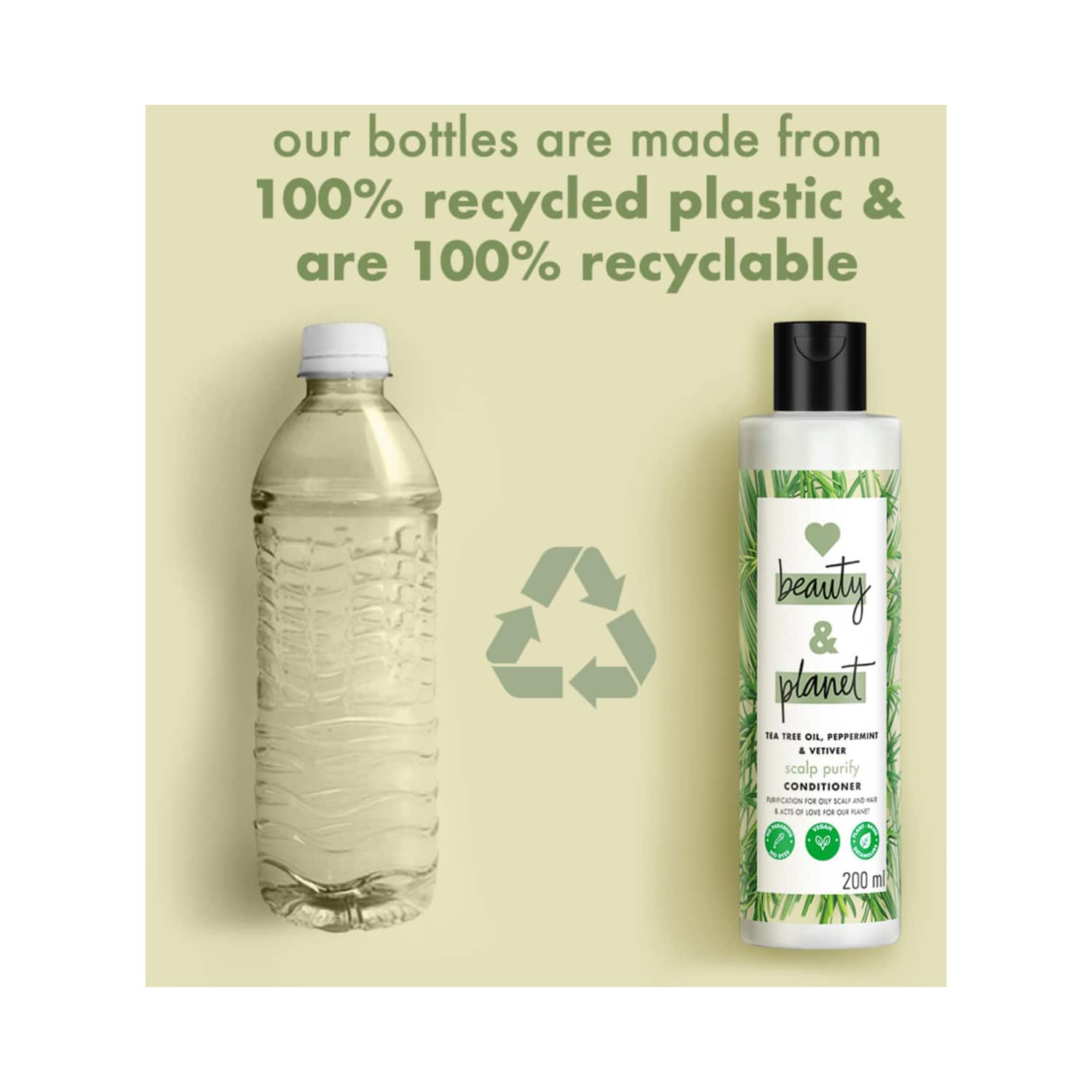 Give your scalp and hair a deep cleanse with the Love Beauty & Planet Tea Tree Peppermint & Vetiver Purifying Conditioner (200ml). It is made with pure tea tree oil to clarify the scalp and detoxify hair to remove impurities and dandruff. Also, this Love Beauty and Planet hair conditioner has pure peppermint and vetiver essential oil to soothe the scalp. Plus, this conditioner has coconut oil to nourish the hair and an earthy vetiver fragrance to refresh the hair.Key Features & Benefits:Infused with pure tea tree oil for its anti-dandruff propertiesHelps clarify the scalp and detoxify the hairFeatures an earthy, refreshing scent of vetiver essential oilContains peppermint and vetiver oil for a soothing effect on the scalpKey Ingredients:Tea tree oil: Has anti-dandruff propertiesPeppermint and vetiver essential oil: Soothe the scalp and impart a refreshing scentCoconut oil: Nourishes the hair and adds moistureAll Ingredients:Water, Cetearyl Alcohol, Behentrimonium Chloride (And) Dipropylene Glycol, Dimethicone (And) Amodimethicone (And) Peg-7 Propylheptyl Ether (And) Cetrimonium Chloride, Cocos Nucifera (Coconut) Oil, Perfume, L-Lysine Monohydrochloride, Melaleuca Alternifolia (Tea Tree) Leaf Oil, Mentha Piperita (Peppermint) Leaf Extract, Vetiveria Zizanoides Root Oil, Acrylates/Beheneth-25 Methacrylate Copolymer, Lactic Acid, Disodium Edta, Benzyl Alcohol, 1, 2-Hexanediol, Sodium Hydroxide, Propylene Glycol, Limonene, Linalool. Plant Based Ingredients.How to Use:Shampoo your hair and rinse it off well. Apply a small amount of conditioner to your scalp and hair strands. Leave it for 1 minute and rinse well for softer and bouncier hair.About the Brand:Launched in 2018 by Piyush Jain and Sonika Malhotra, Love Beauty and Planet is a skin and haircare company under Unilever. They believe that looking good and doing good should go hand-in-hand and that the only way to serve their consumers is by delivering effective beauty results while showing respect to the planet by reducing their carbon footprint. They offer fantastic beauty products that they would love to use themselves. Their wide range of cruelty-free and vegan products includes shampoos, body washes, oils, scrubs, cleansers, and lots more.Check out more Love Beauty & Planet Conditioner options here, or browse through tokocart's full range of Conditioner from top global brands.You can also explore other products from the world of Love Beauty & Planet here on tokocart.