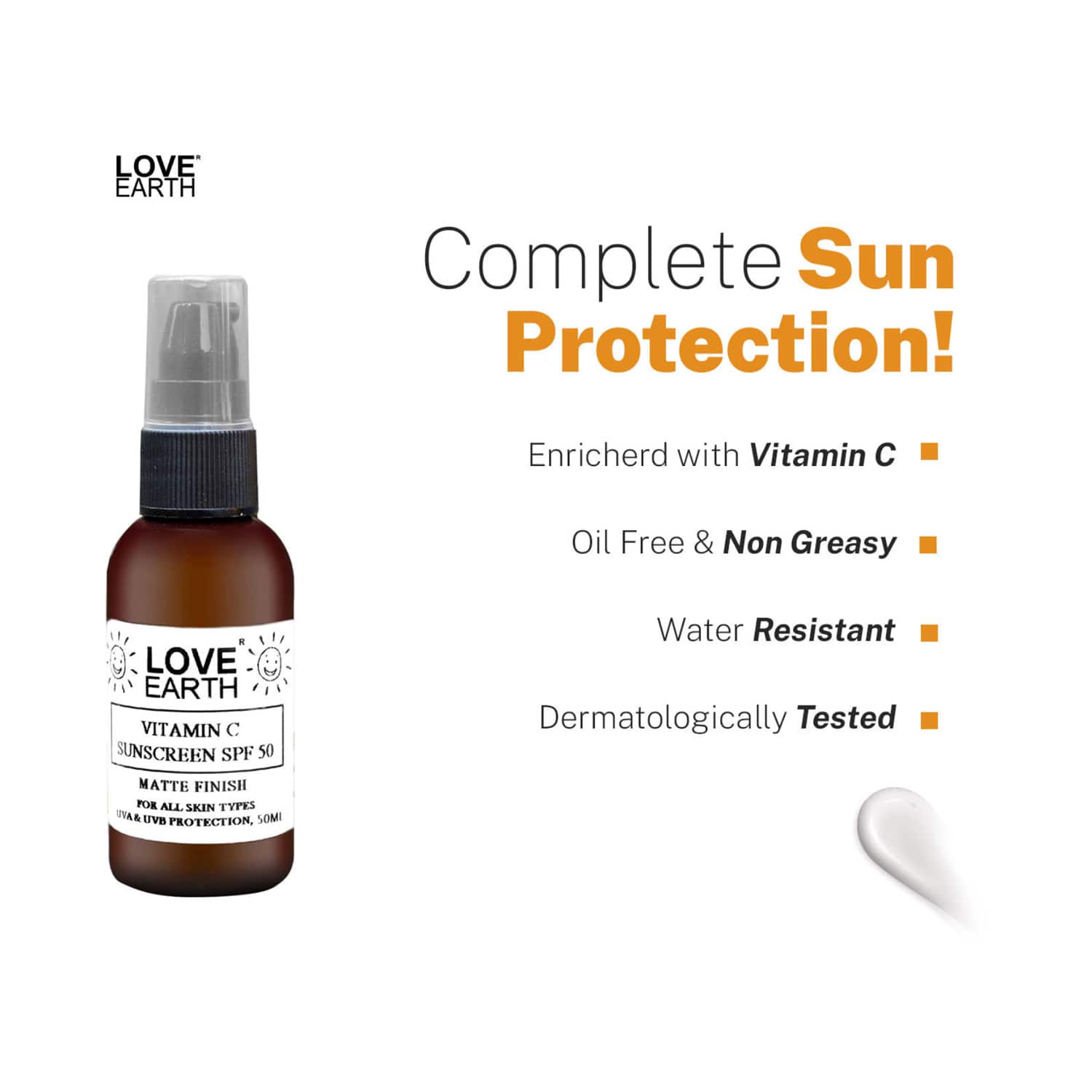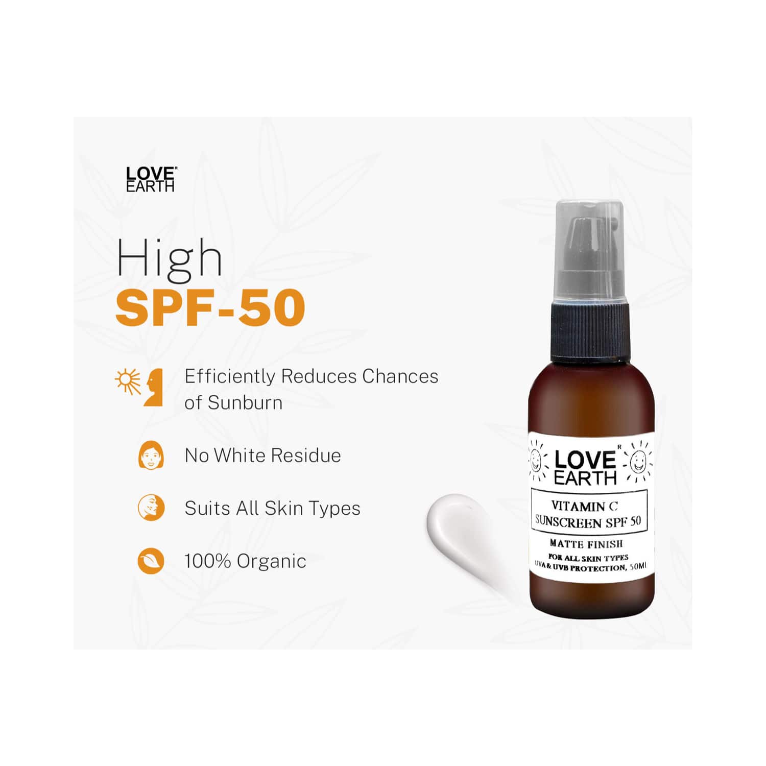 Love Earth Vitamin C Sunscreen SPF 50 UVA UVB Ray Protection With Vitamin C & Essential Oils (50ml)