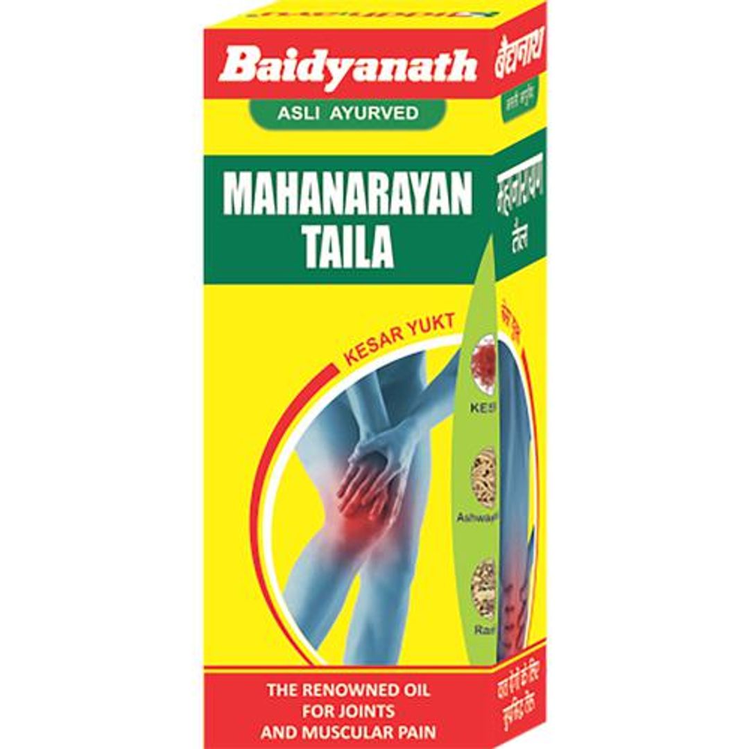 Baidyanath Mahanarayan tail is an Ayurvedic oil widely used for relief from Vata Roga (joint and muscular pains). Enriched with the goodness of pure Saffron, which is clinically proven to reduce inflammation in joint pain. This property is accepted by modern science also. Daily massage with this oil helps in relieving pain and stiffness of joints and muscles.