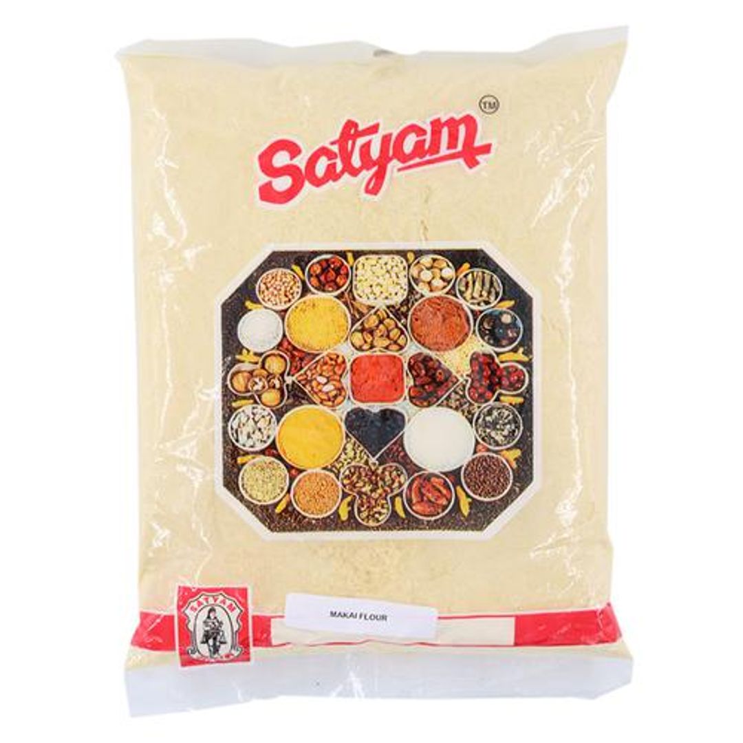 Satyam Makai Flour also known as corn meal flour. It is daily household kitchen essential in all seasons. It come with high nutrient content, it contains protein, fibre, starch, and the vitamins. Corn flour is a fine powder made by grinding dried corn kernels. It is grounded at a medium and coarse consistency, but not as finely soft wheat flour.