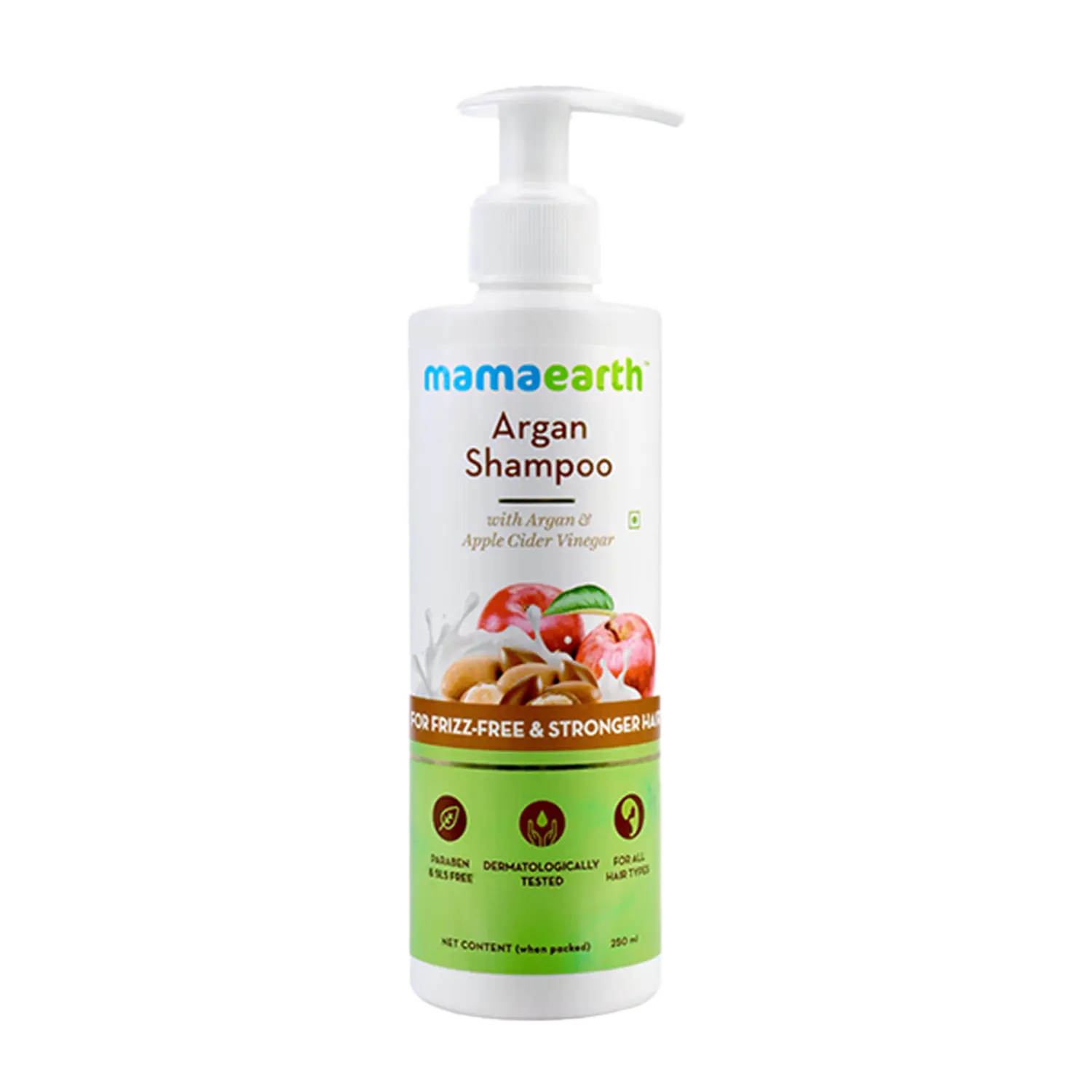 Mamaearth Argan Shampoo for frizz-free & stronger hair is a specialized blend of Argan Oil, Apple Cider Vinegar, Vitamin E and many other effective ingredients to help you achieve the hair you dream of. Its unique formula helps in reducing split ends & frizz. Nourishing vitamins present in this shampoo for dry hair repair, while the natural & toxin-free cleansers in the shampoo help in cleaning & nourishing the scalp. Safe for colored & chemically treated hair, this shampoo is free of harmful chemicals & toxins such as Parabens, Sulfates, Silicones, Mineral Oil & Dyes.Key Features & BenefitsReduces frizzReduces split endsNourishes dry hairSuitable for all hair typesCertified toxin-freeKey IngredientsArgan Oil - Effectively regulates the amount of sebum on the skinVitamin E - Helps maintain skin elasticity, boosts skin repair and skin toneHow To UseGently massage Shampoo on wet hair and scalp with fingertips. Work into a lather and then rinse thoroughly. Follow it up with our Argan conditioner.All IngredientsArgan Oil, Apple Cider Vinegar, Vitamin EAbout the BrandMamaearth was founded in September 2016 by Ghazal Alagh and Varun Alagh, to make skincare routines a little chic but with utmost care. Headquartered in Gurugram (India), Mamaearth is distinguished in the cosmetics industry of India as an online platform that offers natural and toxin-free skin care products.Check out more Mamaearth Shampoo options here, or browse through tokocart's full range of Shampoo from top global brands.You can also explore other products from the world of Mamaearth here on tokocart.