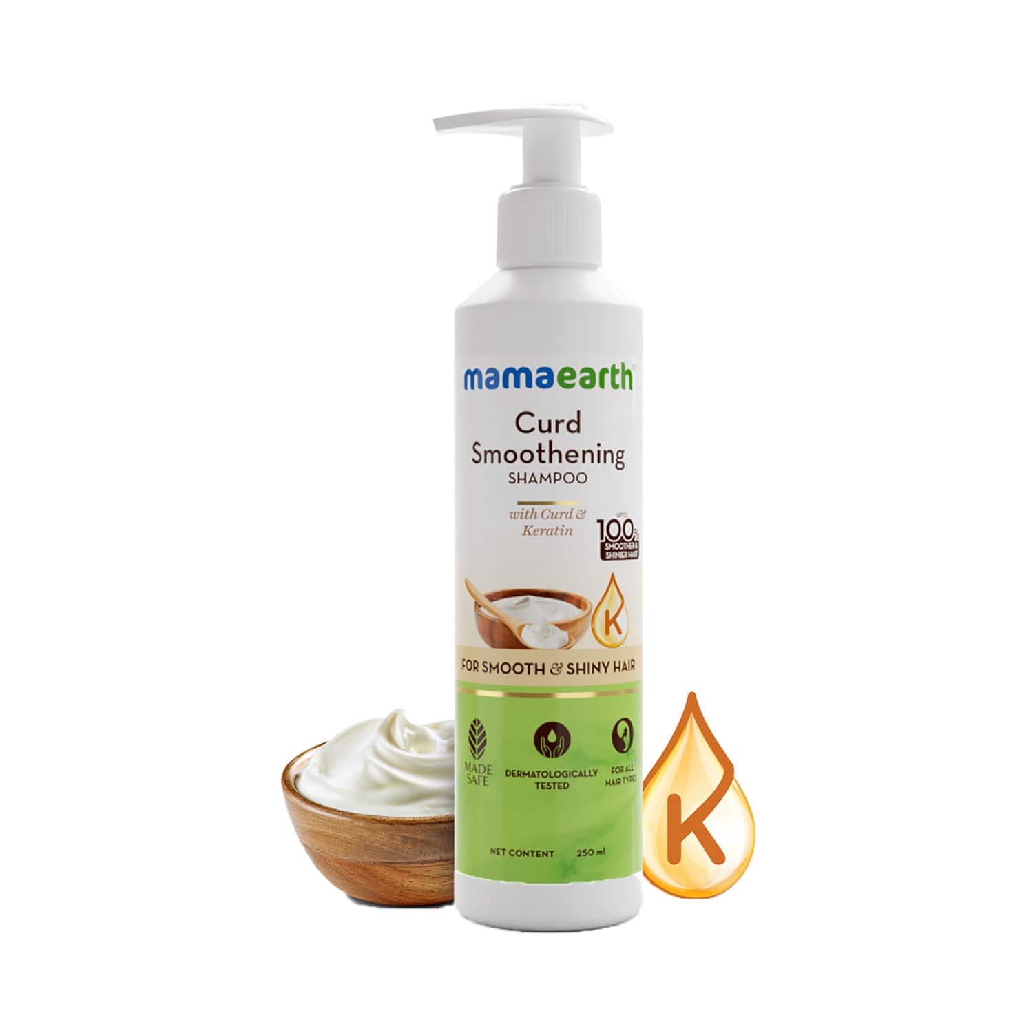 Achieve soft, smooth hair with the Mamaearth Curd Smoothening Shampoo (250ml). It contains curd to help replenish moisture content in the hair to reduce frizziness. Also, the Mamaearth shampoo contains keratin to smoothen the hair and make it shinier and more manageable. Plus, it is free from toxins for safe use.Key Features & Benefits:Infused with curd to reduce frizzinessEnriched with keratin to smoothen the hairGently cleanses to remove dirt and impuritiesFree from toxins and harmful chemicals for safe useKey Ingredients:Curd: Reduces frizzinessKeratin: Smoothens the hairAll Ingredients:Aqua, Sodium Cocoyl Isethionate, Sodium Lauroyl Sarcosinate, Cocamide Mea, Capryloyl/Caproyl Methyl Glucamide, Lauroyl/Myristoyl Methyl Glucamide, Cocamidopropyl Betaine, Glycol Distearate, Coco-Glucoside, Glyceryl Oleate, Phenoxyethanol, Ethylhexylglycerin, Polyquaternium-7, Xylitol, Glucose, Anhydroxylitol, Phoenix Dactylifera Extract, Guar Hydroxypropyltrimonium Chloride, Ifra Certified Allergen Free Fragrance, Disodiumethylenediaminetetraacetate, Citric Acid, Hydrolyzed Keratin (Corn), Panthenol & Yogurt Extract (Curd).How to Use:Wet your hair and scalp with water. Pour a small amount of shampoo into your hands and rub them together to create a lather. Massage the shampoo into your scalp, using circular motions, and then work it through the length of your hair. Rinse thoroughly with water.About the Brand:Mamaearth is a personal care brand founded by Ghazal Alagh and Varun Alagh in the year 2016. It is Asia's first brand with Made safe certified products. Their wide range of products includes body care, fragrances, skincare, haircare, cosmetics, and much more. Every product from the brand is made free of harmful ingredients and ensures 100% safe use for kids and parents.Check out more Mamaearth Shampoo options here, or browse through tokocart's full range of Shampoo from top global brands.You can also explore other products from the world of Mamaearth here on tokocart.