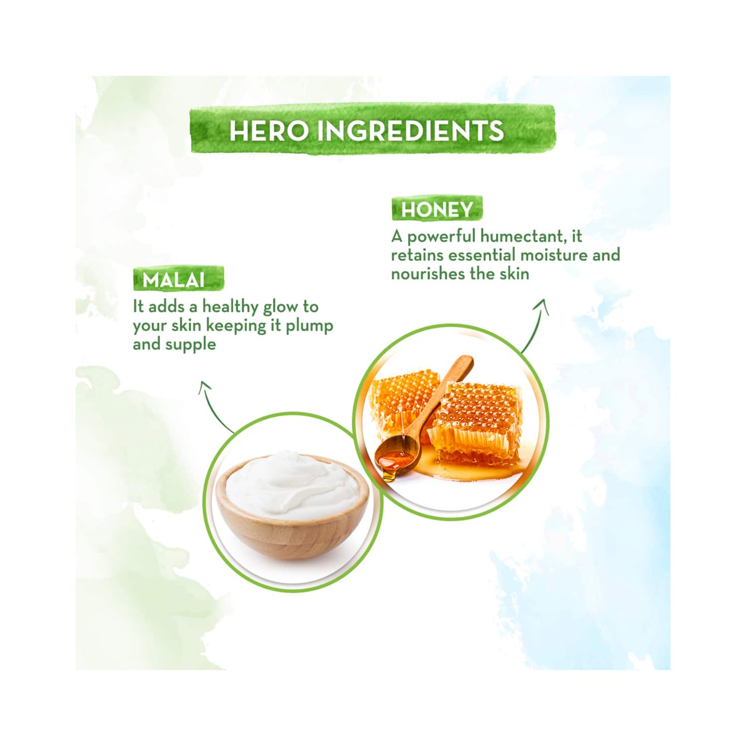 Upgrade your shower routine with the Mamaearth Honey Malai Body Wash With Honey & Malai For Nourishing Glow (300ml). This moisturizing shower gel has honey and malai to gently cleanse the skin without leaving it dry or stripping off its natural oils. Also, this Mamaearth body wash soothes dry skin and relieves irritation while nourishing it and adding a healthy glow.Key Features & Benefits:Enriched with honey and malai to cleanse the skin without stripping moistureNourishes the skin and imparts a natural glowHelps soothe dry skin and relieves irritationMade with natural ingredients and free from toxins for safe useKey Ingredients:Honey: Helps retain essential moisture and nourishes the skinMalai: Adds a healthy glow to the skin and keeps it plump and suppleHow to Use:To start, pour the body wash on a wet loofah. After that, squeeze the loofah to create a lather and massage it on your damp skin. Then, rinse off the body wash with water and towel dry your body to get soft and fragrant skin.About the Brand:Mamaearth is a personal care brand founded by Ghazal Alagh and Varun Alagh in the year 2016. It is Asia's first brand with Made safe certified products. Their wide range of products includes body care, fragrances, skincare, haircare, cosmetics, and much more. Every product from the brand is made free of harmful ingredients and ensures 100% safe use for kids and parents.Check out more Mamaearth Body Wash & Shower Gel options here, or browse through tokocart's full range of Body Wash & Shower Gel from top global brands.You can also explore other products from the world of Mamaearth here on tokocart.