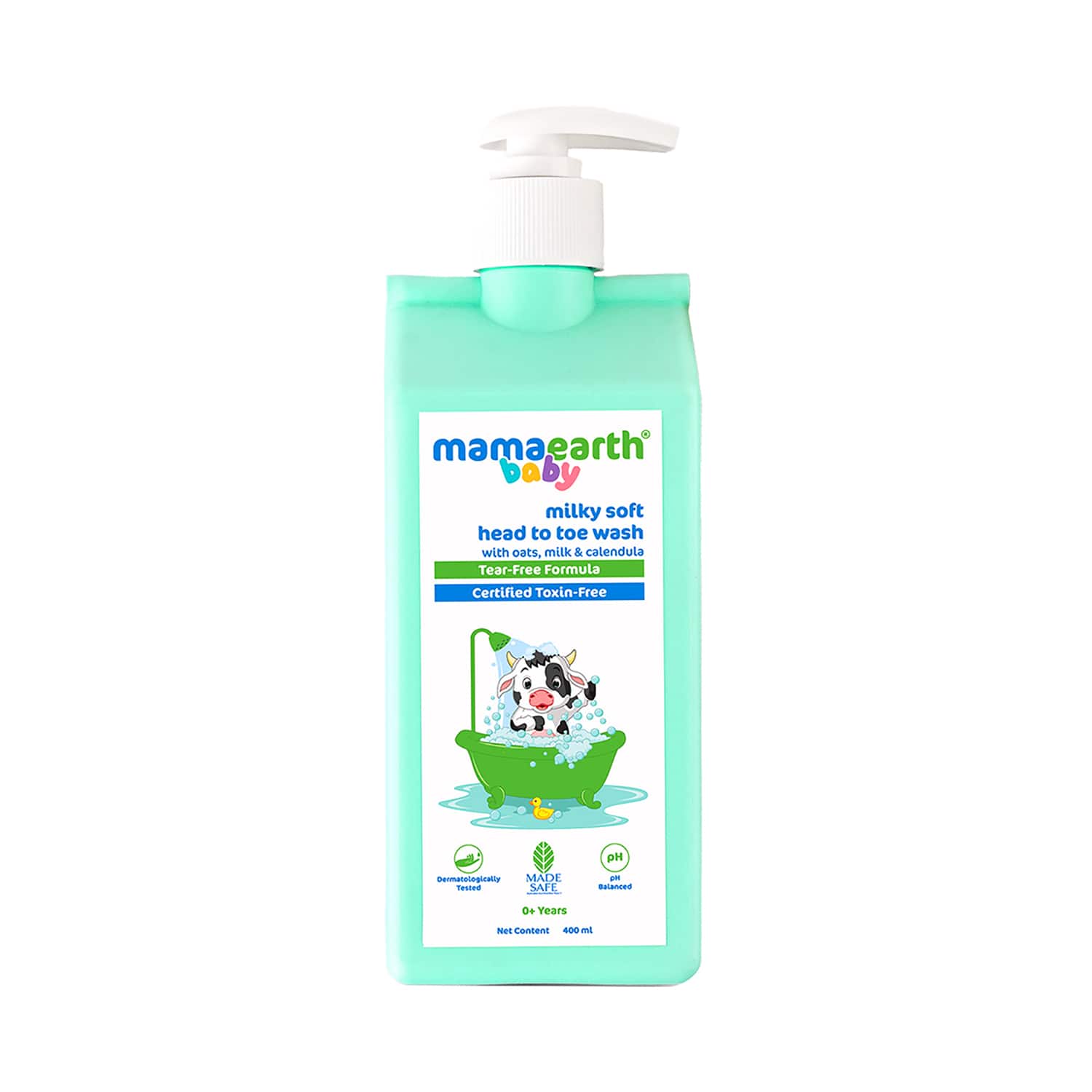Give your little one's skin gentle care with the Mamaearth Milky Soft Head To Toe Wash With Oats, Milk And Calendula For Babies (400ml). This body wash for babies is made with oats, milk, and calendula to gently cleanse, reduce allergic infections, and maintain the right pH balance and moisture content of the skin. Also, this Mamaearth baby wash has all-natural ingredients that are extremely gentle on the baby's delicate skin and do not irritate their eyes. Plus, this moisturizing baby wash gently yet deeply cleanses the skin without stripping it of its moisture. Key Features & Benefits:Contains oats, milk, and calendula to nourish and clean the baby's sensitive skinHas a tear-free formula that is gentle and does not irritate the eyesMilky texture moisturizes the skin and leaves it soft and smoothCruelty-free baby wash is free from silicones, parabens, and sulfates for safe use on babies' skin Key Ingredients:Oats: Have anti-inflammatory properties and soothe and hydrate the skinMilk protein: Hydrates the skin and reduces allergic infectionsCalendula: Deeply nourishes the skin and provides anti-fungal, antioxidant, and anti-inflammatory benefitsCitric acid: Cleans the skin properly and maintains the optimum pH level All Ingredients:Aqua, Cocamidopropyl Betaine, Glycerin, Caprylyl/Capryl Glucoside, Sodium Methyl Cocoyl Taurate, Decyl Glucoside, Sodium Methyl 2-Sulfolaurate, Disodium 2-Sulfolaurate, Propylene Glycol, Ceteareth-60 Myristyl Glycol, Glycol Stearate, Ifra Certified Allergen Free Fragrance, Sodiumbenzoate, Polyquaternium 10, Xanthan Gum, Potassium Sorbate, Calendula Officinalis (Calendula)Flower Extract, Avena Sativa (Oat) Kernel Extract, Citric Acid &Hydrolyzed Milk Protein. How to Use:Pump out the body wash onto a wet washcloth or on your hands. Then, apply and lather it on the baby's body and hair. Rinse it off thoroughly with water. About the Brand:Mamaearth is a personal care brand founded by Ghazal Alagh and Varun Alagh in the year 2016. It is Asia's first brand with Made-safe certified products. Their wide range of products includes body care, fragrances, skincare, haircare, cosmetics, and much more. Every product from the brand is made free of harmful ingredients and ensures 100% safe use for kids and parents.Check out more Mamaearth Body Wash options here, or browse through tokocart's full range of Body Wash from top global brands.You can also explore other products from the world of Mamaearth here on tokocart.