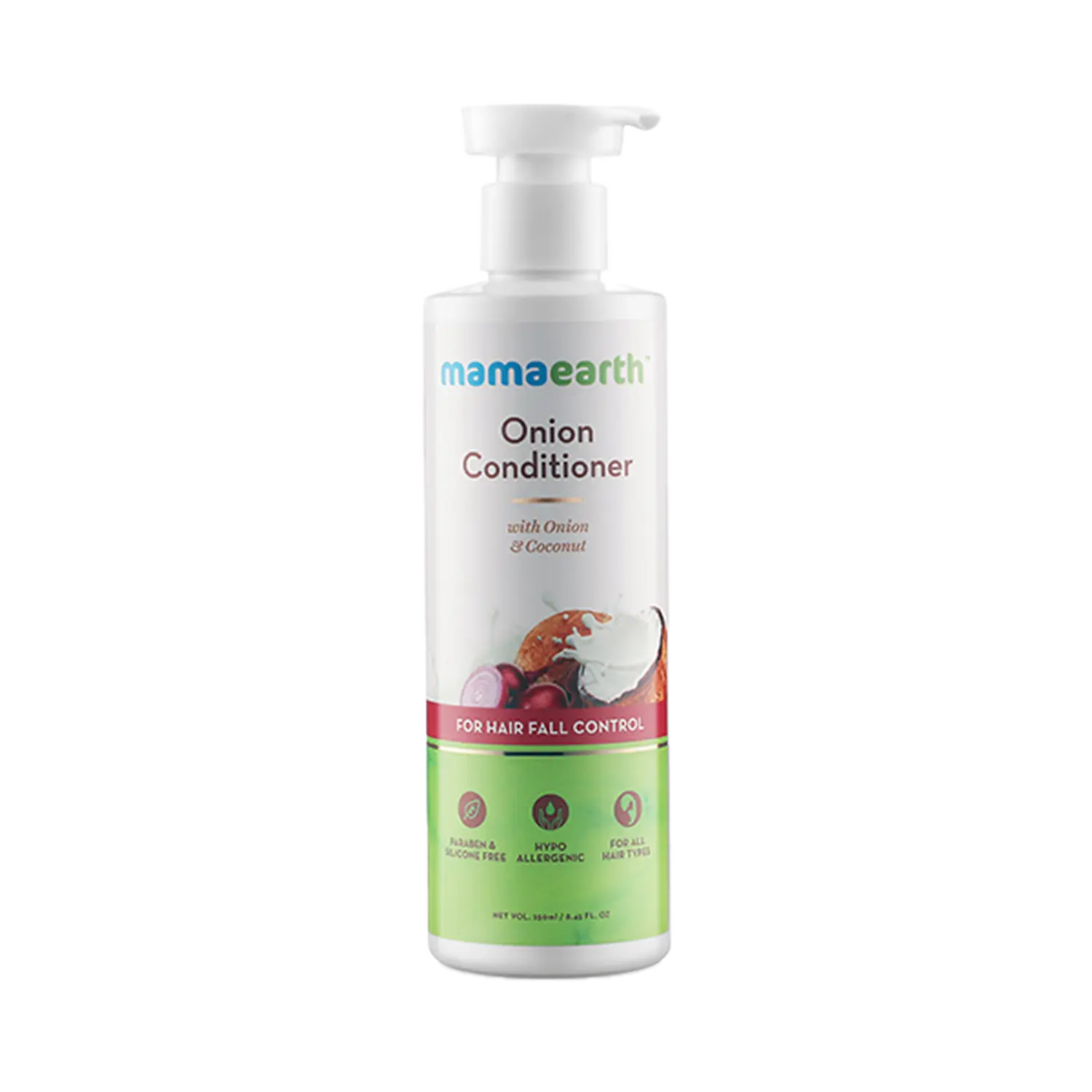 Mamaearth Onion Conditioner is for even stronger, smoother, and shinier hair. It's time to welcome healthier hair with the time-tested goodness of Onion. Onion, rich in Sulphur, potassium & antioxidants, reduces hair fall & accelerates hair growth. The natural goodness of Sweet Almond Oil nourishes and strengthens the hair and is optimal for controlling hair fall.Key Features & BenefitsReduces hair fallMakes hair soft and smoothDetangles hairSafe for treated hairFree of harmful chemicalsKey IngredientsCoconut - Keeps you feeling shiny and newVitamin E - Helps maintain skin elasticity, boosts skin repair and skin toneHow To UseAfter shampooing, take an adequate amount of Conditioner. Apply it on damp hair, from mid-length all the way down to the tips. Leave on for 2-3 minutes. Rinse thoroughly.All IngredientsOnion Seed Oil, Coconut, Almond OilAbout the BrandMamaearth was founded in September 2016 by Ghazal Alagh and Varun Alagh, to make skincare routines a little chic but with utmost care. Headquartered in Gurugram (India), Mamaearth is distinguished in the cosmetics industry of India as an online platform that offers natural and toxin-free skin care products.Check out more Mamaearth Conditioner options here, or browse through tokocart's full range of Conditioner from top global brands.You can also explore other products from the world of Mamaearth here on tokocart.