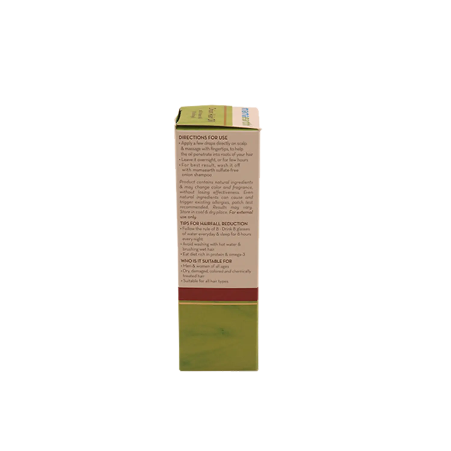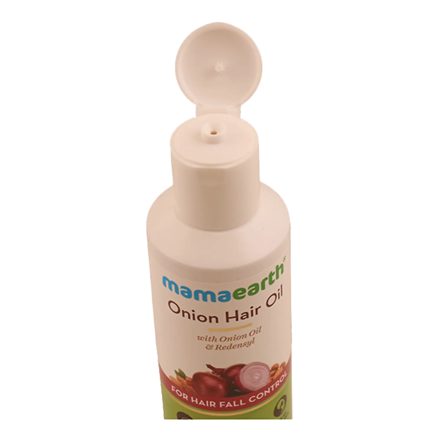 Mamaearth Onion Oil is lightweight and non-sticky formulation and oh-so-good fragrance, it's time to welcome stronger and healthier hair with the time-tested goodness of Onion.Onion Oil, rich in Sulphur, Potassium & antioxidants, reduces hair fall & accelerates hair regrowth. One of the newest breakthrough ingredients in hair growth, Redensyl, unblocks hair follicles & also boosts new hair growth. Safe for colored & chemically treated hair, the Oil is free of harmful chemicals & toxins such as Silicones, Parabens, Mineral Oil, and Dyes.Key Features & BenefitsBoosts hair growthAdds strength and shineNourishes scalpSafe for treated hairFree of harmful chemicalsKey IngredientsVitamin E - Helps maintain skin elasticity, boosts skin repair and skin toneVitamin C - Helps heal blemishes, reduce hyperpigmentation and gives skin an out-of-this-world glowHow To UseApply a few drops directly on scalp & massage with fingertips, to help the Oil penetrate into roots of your hair. Leave it overnight, or for few hours. Wash off with a sulfate-free shampoo.All IngredientsOnion Seed Oil, Redensyl, Almond Oil, Vitamin E, Vitamin CAbout the BrandMamaearth was founded in September 2016 by Ghazal Alagh and Varun Alagh, to make skincare routines a little chic but with utmost care. Headquartered in Gurugram (India), Mamaearth is distinguished in the cosmetics industry of India as an online platform that offers natural and toxin-free skin care products.Check out more Mamaearth Hair Oil options here, or browse through tokocart's full range of Hair Oil from top global brands.You can also explore other products from the world of Mamaearth here on tokocart.