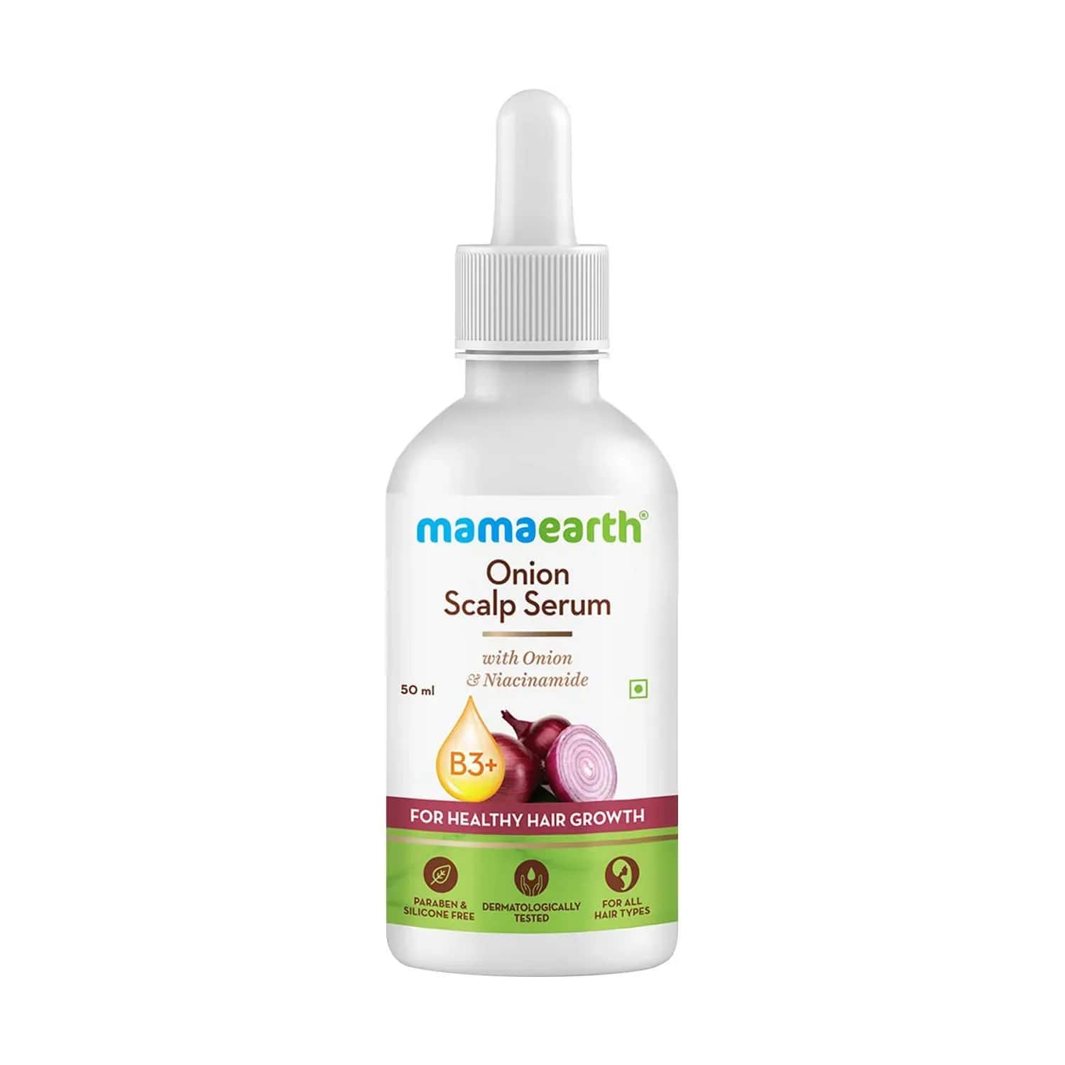 Mamaearth Onion Scalp Serum penetrates quickly to stimulate blood circulation that allows the scalp to absorb essential nutrients (Onion & Pea Sprout) and antioxidant boosters (Niacinamide & Aloe Vera) to fight hair fall. Perfect pH score! A healthy scalp is a moisturized one. The serum promotes a healthy scalp with the right balance of acidity and alkalinity. It deeply nourishes and controls sebum production to prevent scalp infections that cause hair loss. Hello, healthy hair! This serum helps stimulate hair follicles, restores root health, and nourishes the scalp. It is formulated with antibacterial, anti-inflammatory, and antioxidant properties to revitalize, strengthen and protect.Key Features & BenefitsReduces frizz and tanglesReduces hair breakageMakes hair soft and shinyKey IngredientsAloe Vera - Helps stimulate both collagen and elastin fibres, boosting the elasticity of your skinHow To UseApply a generous amount of serum using the dropper directly all over your scalp. Massage with fingertips to help the serum penetrate deeper into hair roots. Leave it overnight, or for a few hours. Wash off with Mamaearth sulfate-free Onion Shampoo.All IngredientsRed Onion, Niacinamide, Pea SproutsAbout the BrandMamaearth was founded in September 2016 by Ghazal Alagh and Varun Alagh, to make skincare routines a little chic but with utmost care. Headquartered in Gurugram (India), Mamaearth is distinguished in the cosmetics industry of India as an online platform that offers natural and toxin-free skin care products.Check out more Mamaearth Hair Serum options here, or browse through tokocart's full range of Hair Serum from top global brands.You can also explore other products from the world of Mamaearth here on tokocart.