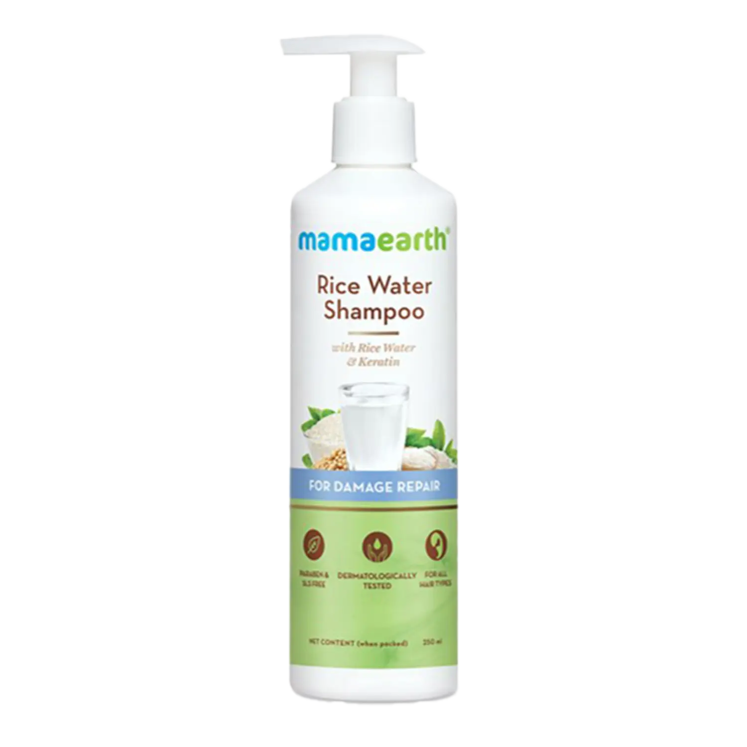 Mamaearth Rice Water Shampoo has the natural goodness of Rice Water and Keratin together restore vitality, shine, and smoothness to rejuvenate and restore hair. No more breakage! Rice Water is power-packed with amino acids and vitamins that strengthen weak hair bonds, improve elasticity and add shine, thereby preventing hair breakage and thinning. Rice Water and Keratin in the conditioner help reduce split ends and damaged texture by giving your hair a healthy boost of essential vitamins and minerals.Key Features & BenefitsReduces hair fallStrengthens and nourishes hairMakes hair soft and smoothAdds shineSafe for treated hairKey IngredientsCoconut - Keeps you feeling shiny and newVitamin C - Helps heal blemishes, reduce hyperpigmentation and gives skin an out-of-this-world glowHow To UseGently massage Shampoo on wet hair and scalp with fingertips. Work into a lather and then rinse thoroughly. Follow it up with our silicone-free Rice Water conditioner.All IngredientsFermented Rice Water, Keratin, Wheat Protein, Vitamin C, CoconutAbout the BrandMamaearth was founded in September 2016 by Ghazal Alagh and Varun Alagh, to make skincare routines a little chic but with utmost care. Headquartered in Gurugram (India), Mamaearth is distinguished in the cosmetics industry of India as an online platform that offers natural and toxin-free skin care products.Check out more Mamaearth Shampoo options here, or browse through tokocart's full range of Shampoo from top global brands.You can also explore other products from the world of Mamaearth here on tokocart.