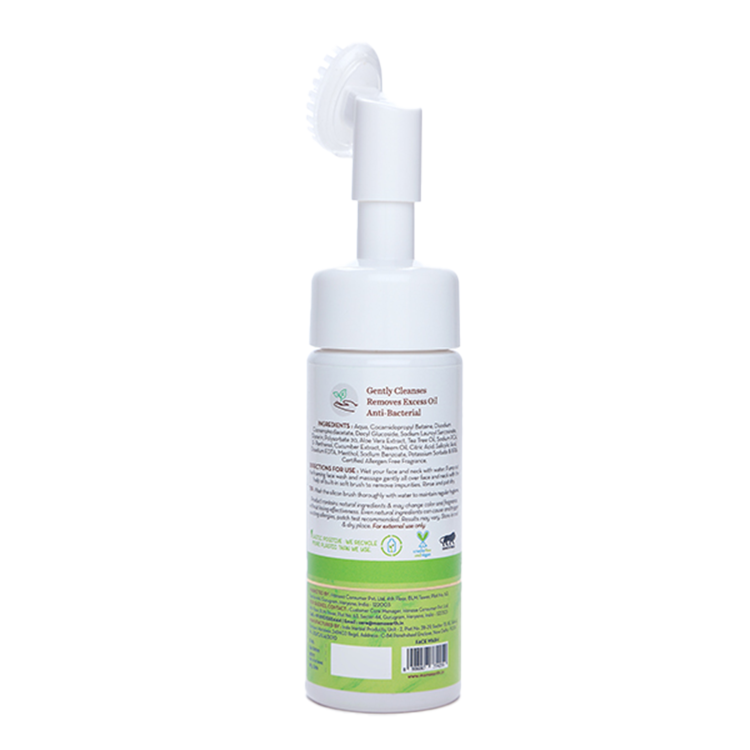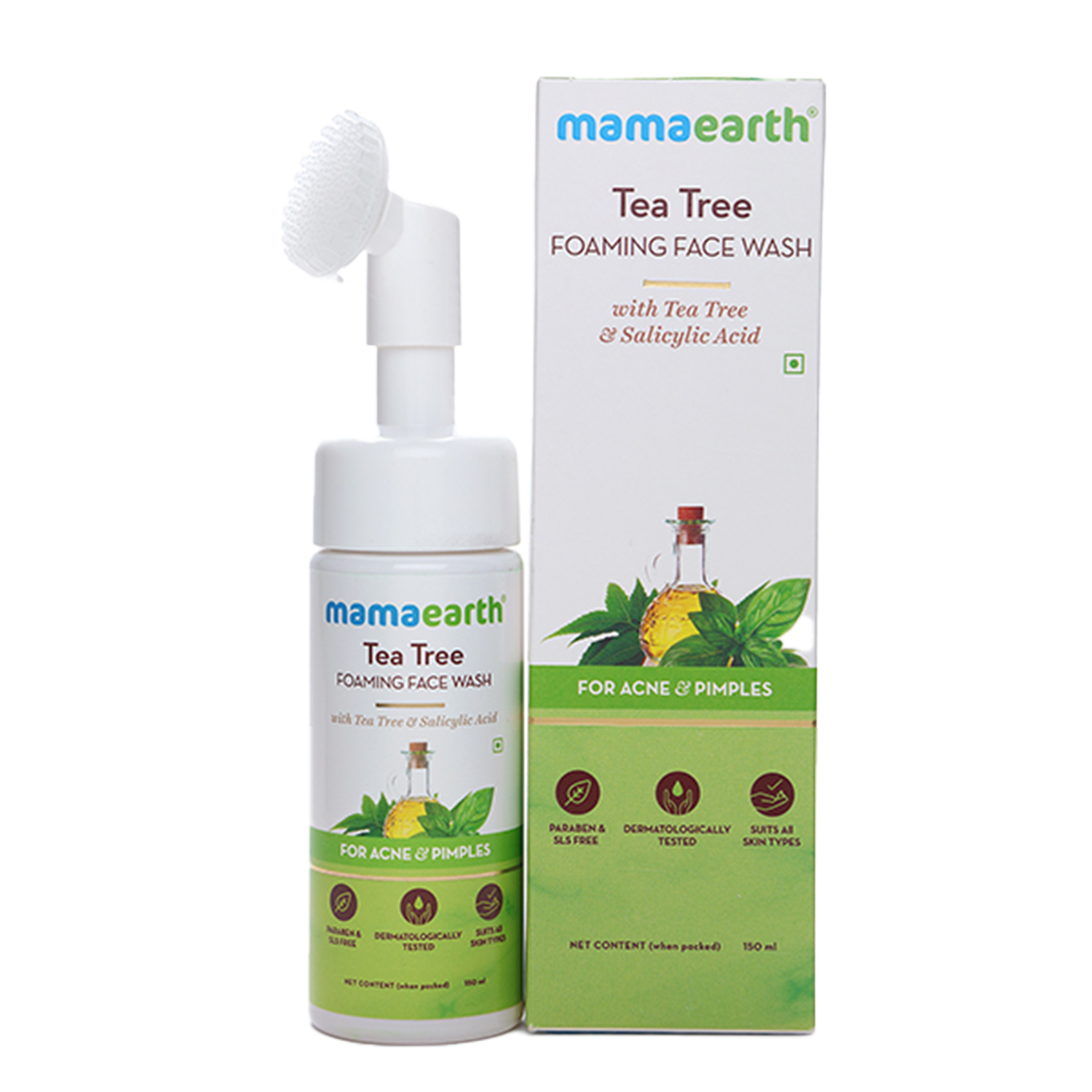 Mamaearth Tea Tree Foaming Face Wash is a combination of Tea Tree, Neem & Salicylic Acid which kills bacteria while Aloe Vera heals & locks in moisture. With this salicylic acid cleanser by your side, you would never have to worry about acne or pimples. The Tea Tree Foaming Face Wash clarifies pores and removes excess oil with the help of Salicylic Acid, thereby preventing acne, pimples, acne marks & blemishes. And yes, it does all this without stripping the skin of its essential oils! Light Foamy Goodness! Mamearth Tea Tree Foaming Face Wash comes with the tender & loving caress of Tea Tree that keeps acne at bay by purifying the skin and soothing inflammation. Salicylic Acid exfoliates the top layer, resulting in skin that's visible clearer.Key Features & BenefitsGently cleansesHelps prevent acneAntibacterialComes with a built-in brushCertified toxin-freeKey IngredientsTea Tree - Helps calm redness, swelling and inflammationNeem - Helps even out the skin tone, reduces dark spots making your skin spotlessHow To UseWet your face and neck with water. Pump out the foaming face wash and massage gently all over your face and neck with the help of a built-in soft brush to remove impurities. Rinse and pat dry.All IngredientsTea Tree, Salicylic Acid, NeemAbout the BrandMamaearth was founded in September 2016 by Ghazal Alagh and Varun Alagh, to make skincare routines a little chic but with utmost care. Headquartered in Gurugram (India), Mamaearth is distinguished in the cosmetics industry of India as an online platform that offers natural and toxin-free skin care products.