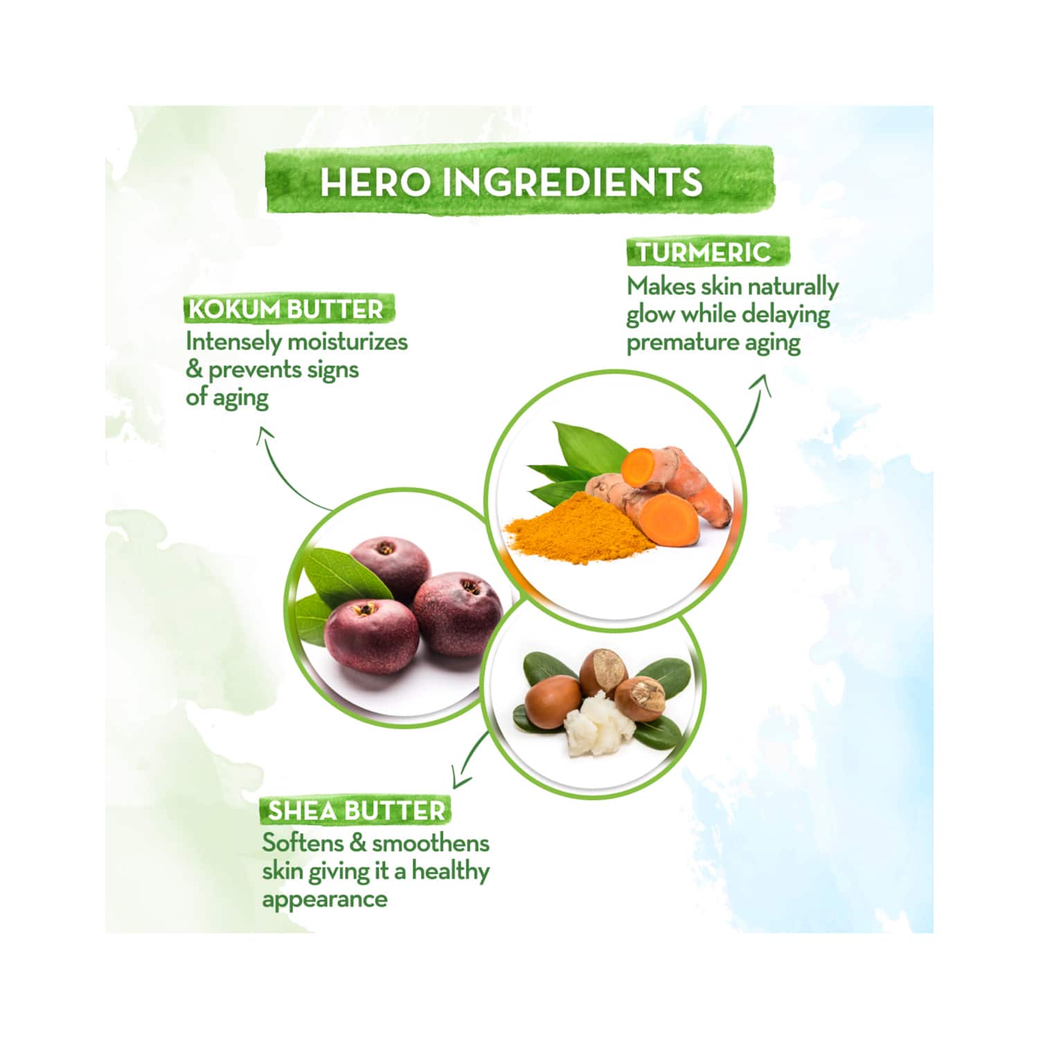 The Mamaearth Ubtan Body Lotion With Turmeric & Kokum Butter For Glowing Skin (200ml) provides ultimate nourishment for dull skin. This skin-brightening body moisturizer is enriched with kokum butter, shea butter, and olive oil to improve skin texture and enhance suppleness. Also, this Mamaearth body lotion helps keep the skin hydrated for long hours while improving the appearance of dull and dehydrated skin.Key Features & Benefits:Contains moisturizing kokum butter, shea butter, and olive oil to improve skin textureHelps keep the skin hydrated for long hoursQuickly absorbs into the skin without making it heavy or stickyToxin-free and dermatologically tested lotion is safe for use on all skin typesKey Ingredients:Turmeric: Makes the skin glow, reduces signs of aging, protects from sun damage, and brightens skin toneShea butter: Moisturizes and softens dry skinOlive oil: Has vitamin E to moisturize, protect, and nourish the skinKokum butter: Intensely moisturizes the skin, heals dry and cracked skin, and reduces the appearance of wrinkles, fine lines, and age spotsHow to Use:Wash your skin. Take a bit of the lotion and put it on your skin. After that, massage well for increased hydration. Apply twice daily for the best results.About the Brand:Mamaearth is a personal care brand founded by Ghazal Alagh and Varun Alagh in the year 2016. It is Asia's first brand with Made safe certified products. Their wide range of products includes body care, fragrances, skincare, haircare, cosmetics, and much more. Every product from the brand is made free of harmful ingredients and ensures 100% safe use for kids and parents.Check out more Mamaearth Body Lotions & Moisturisers options here, or browse through tokocart's full range of Body Lotions & Moisturisers from top global brands.You can also explore other products from the world of Mamaearth here on tokocart.