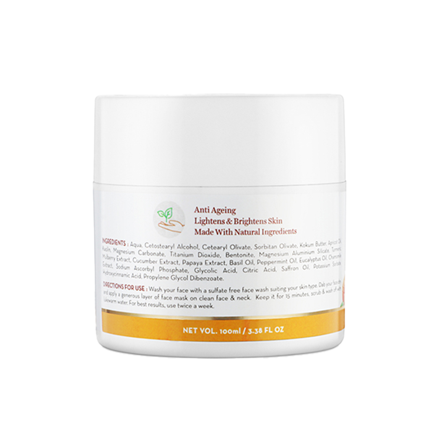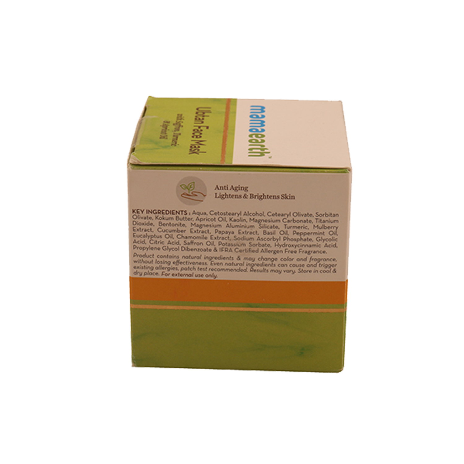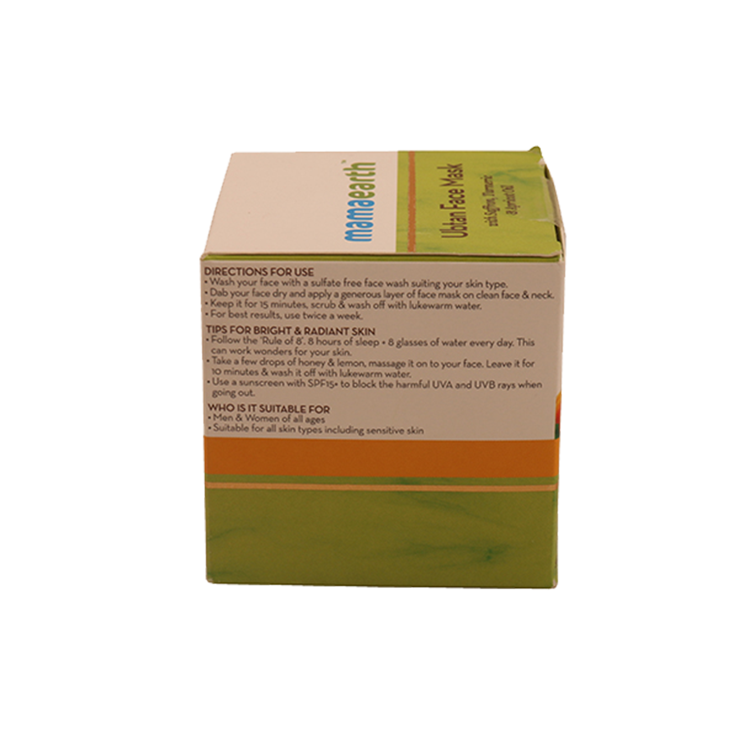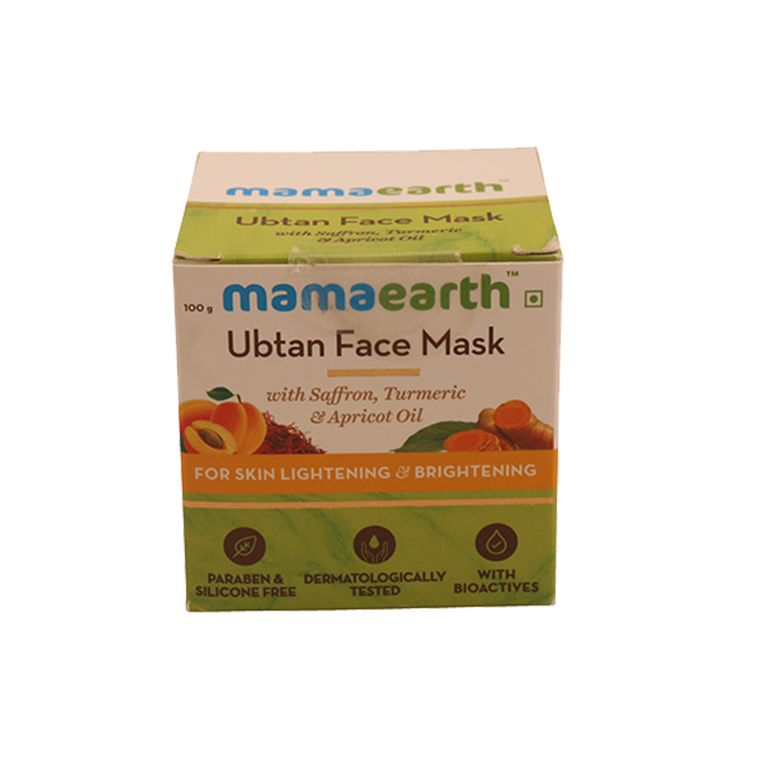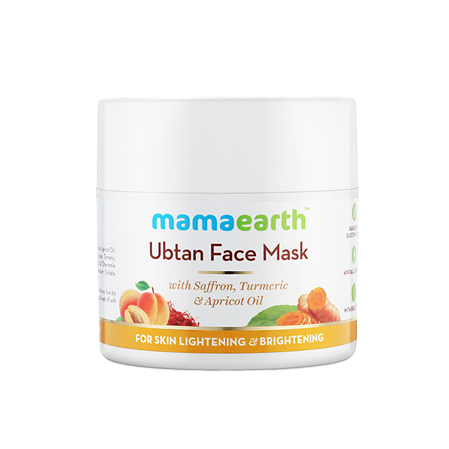 The goodness of Mamaearth Ubtan Face Mask For Skin Lightening & Brightening comprises Turmeric and Saffron – both ingredients that are revered for their benefits in imparting glowing skin and tan removal. Saffron clears spots and helps in tan removal, while the antioxidant properties of turmeric protect the skin cells from free radical damage while keeping them healthy. Mamaearth Ubtan Face Mask is suitable for all skin types and is free of Parabens, Silicones, Sulfates, Phthalates, and Artificial Colors.Key Features & BenefitsRemoves tanned skinBrightens skinKey IngredientsTurmeric - Provide glow and lustre to the skinSaffron - Provides a burst of nourishment and freshness to the skinHow To UseWash your face with a sulfate free face wash suiting your skin type. Dab our face dry and apply a generous layer of face mask on clean face. Keep it for 15 minutes, scrub & wash off with lukewarm water.All IngredientsSaffron, Turmeric, Apricot OilAbout the BrandMamaearth was founded in September 2016 by Ghazal Alagh and Varun Alagh, to make skincare routines a little chic but with utmost care. Headquartered in Gurugram (India), Mamaearth is distinguished in the cosmetics industry of India as an online platform that offers natural and toxin-free skin care products.