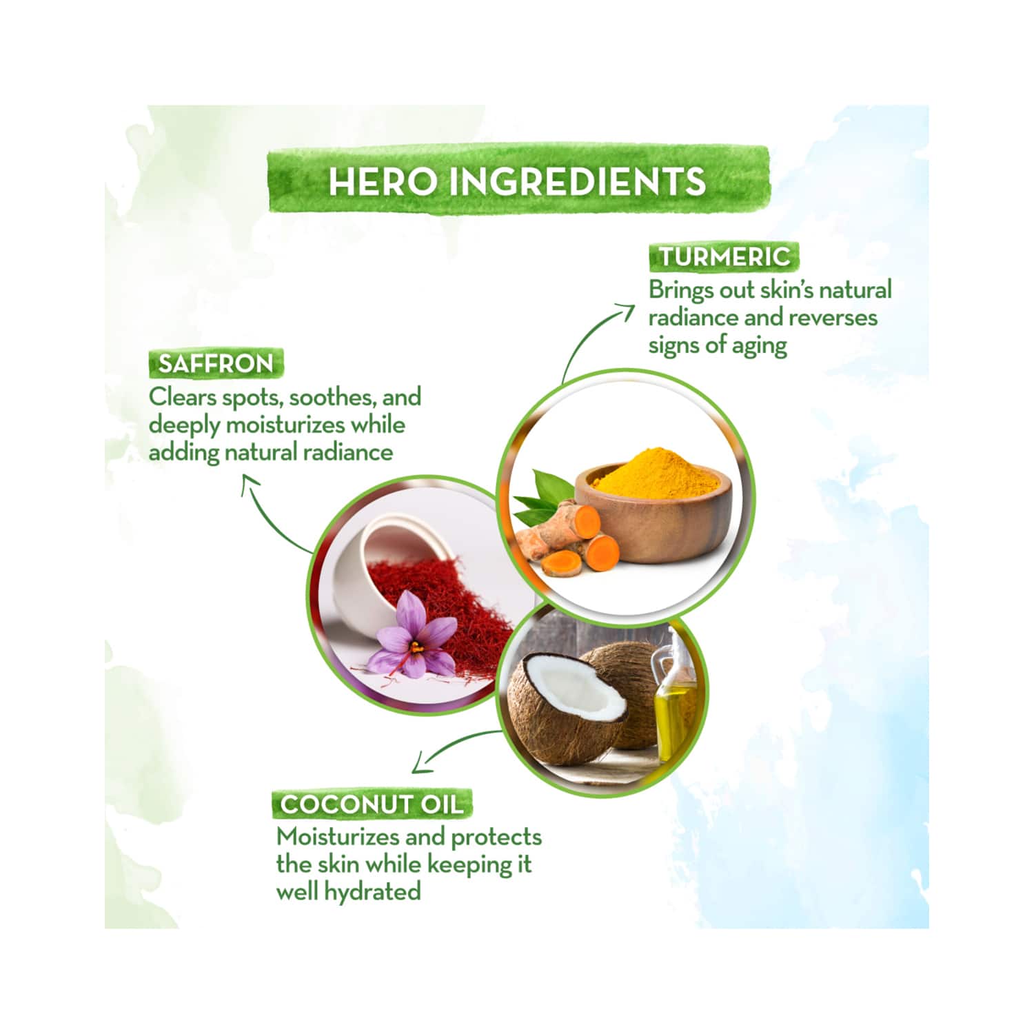 Key Ingredients:Turmeric, saffron, and carrot seed oil: Brighten and nourish skin