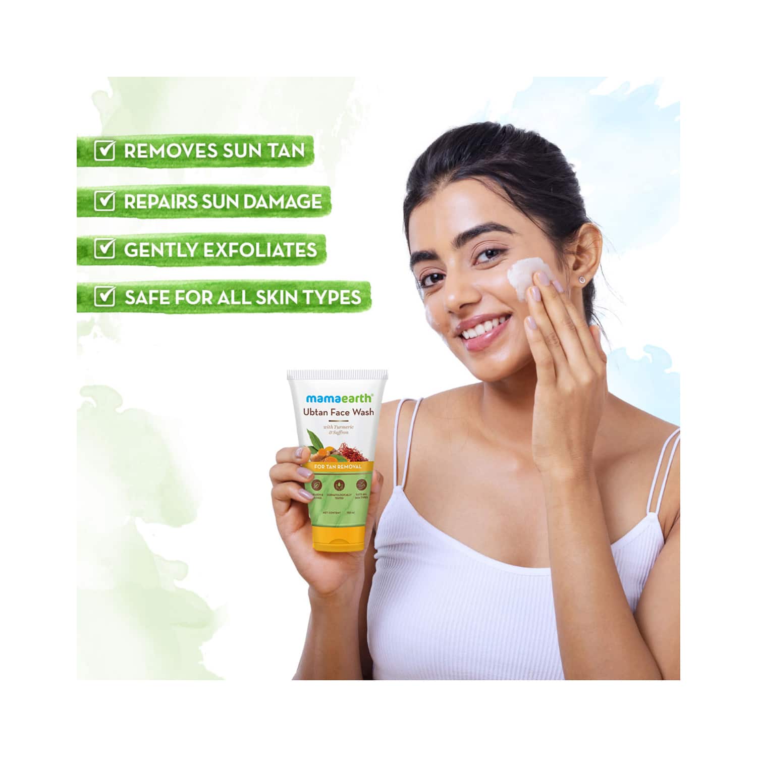 Effortlessly remove sun tan with the Mamaearth Ubtan Natural Face Wash (150ml). This de-tan facewash is formulated with turmeric and carrot seed oil that effectively nourishes your skin while preventing sun damage. It contains walnut beads that gently exfoliate your skin to brighten your complexion and remove tan. Plus, the saffron extract in this Mamaearth facewash gives you a radiant glow by improving circulation and reducing redness.