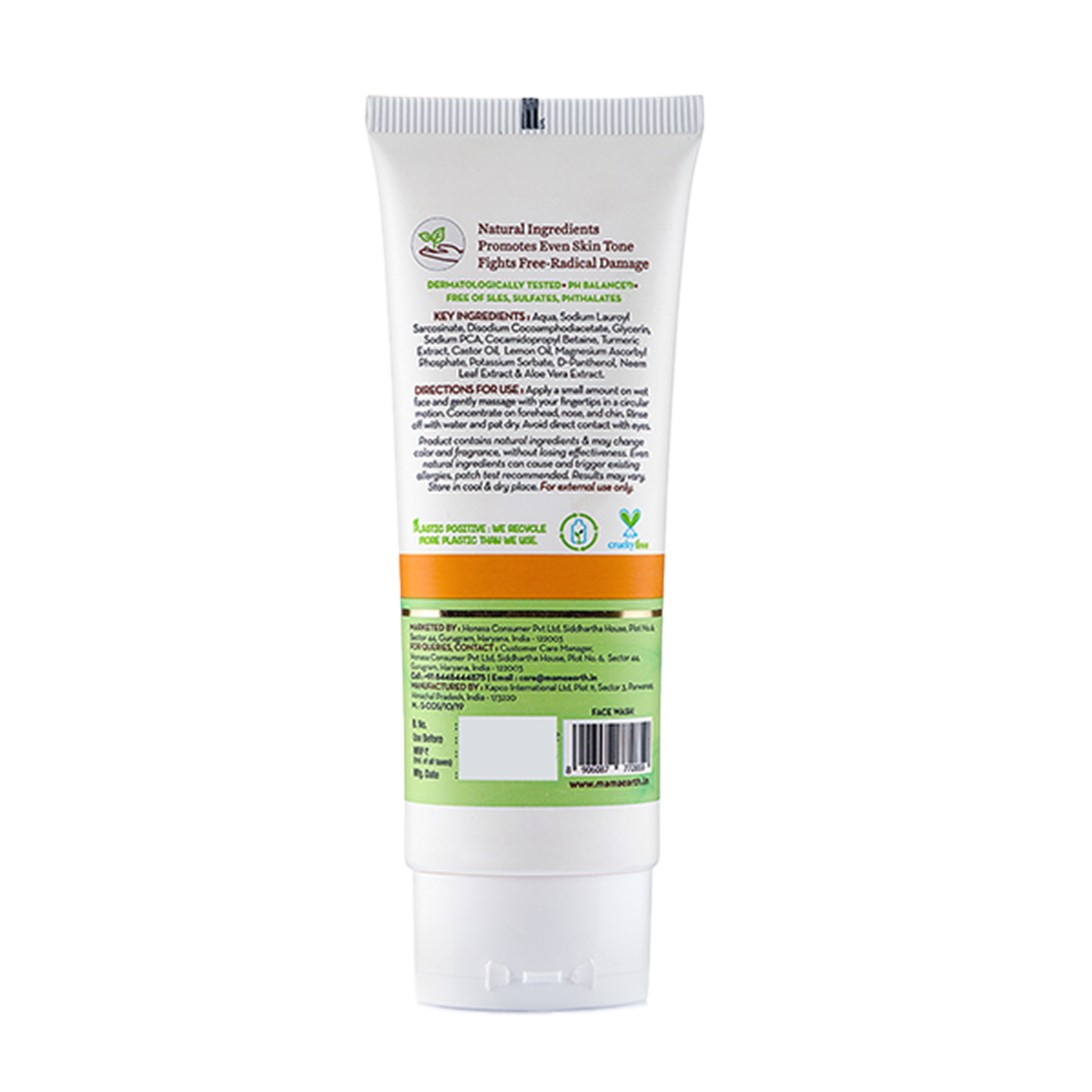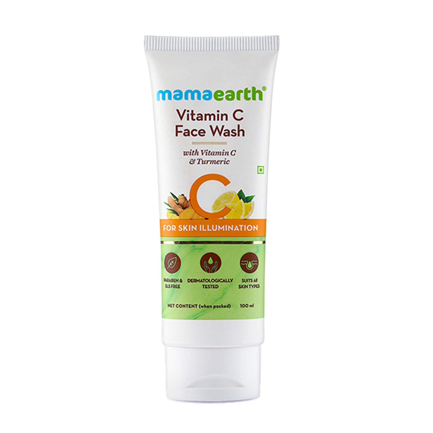 Mamaearth Vitamin C Face Wash is excellent at fighting free radical damage keeping your skin healthy and radiant. The antioxidative properties of Vitamin C and Turmeric reverse sun damage and even out skin tone. It helps brighten the complexion while promoting collagen synthesis to give your skin youthful suppleness.Key Features & BenefitsReplenishes lost radianceDeeply cleanses skinBrightens skinPromotes even skin toneSuitable for all skin typesKey IngredientsVitamin C - Helps heal blemishes, reduce hyperpigmentation and gives skin an out-of-this-world glowAloe Vera - Helps stimulate both collagen and elastin fibres, boosting the elasticity of your skinTurmeric - Provide glow and lustre to the skinHow To UseApply a small amount on wet face. Gently massage with your fingertips in a circular motion. Rinse off with water and pat dry.All IngredientsVitamin C, Walnut Shell Powder, SaffronAbout the BrandMamaearth was founded in September 2016 by Ghazal Alagh and Varun Alagh, to make skincare routines a little chic but with utmost care. Headquartered in Gurugram (India), Mamaearth is distinguished in the cosmetics industry of India as an online platform that offers natural and toxin-free skin care products.