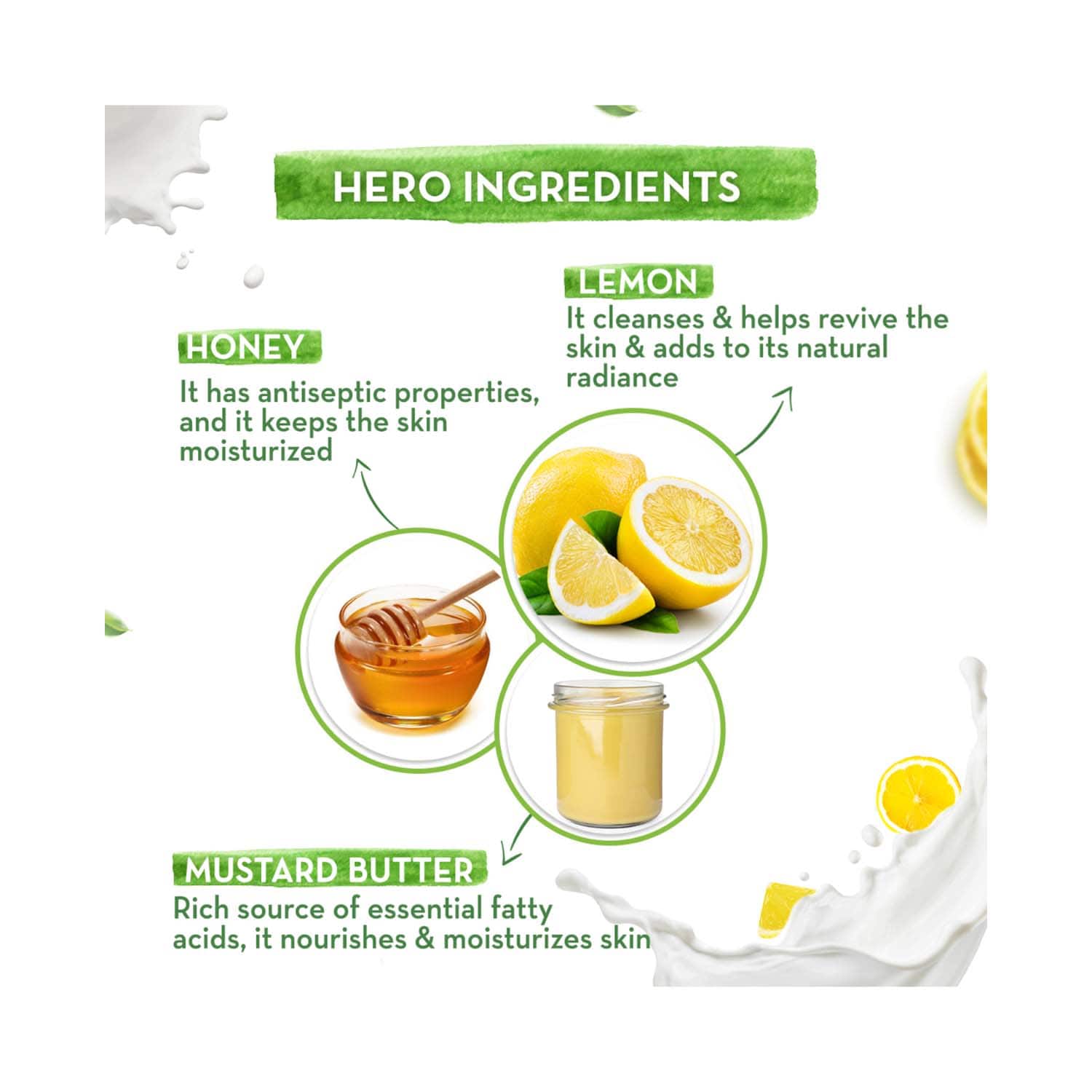 Key Ingredients:Vitamin C: Prevents free radical damageCitric acid: Exfoliates the skinHoney: Soothes inflamed skinMustard butter: Nourishes and moisturizes the skin