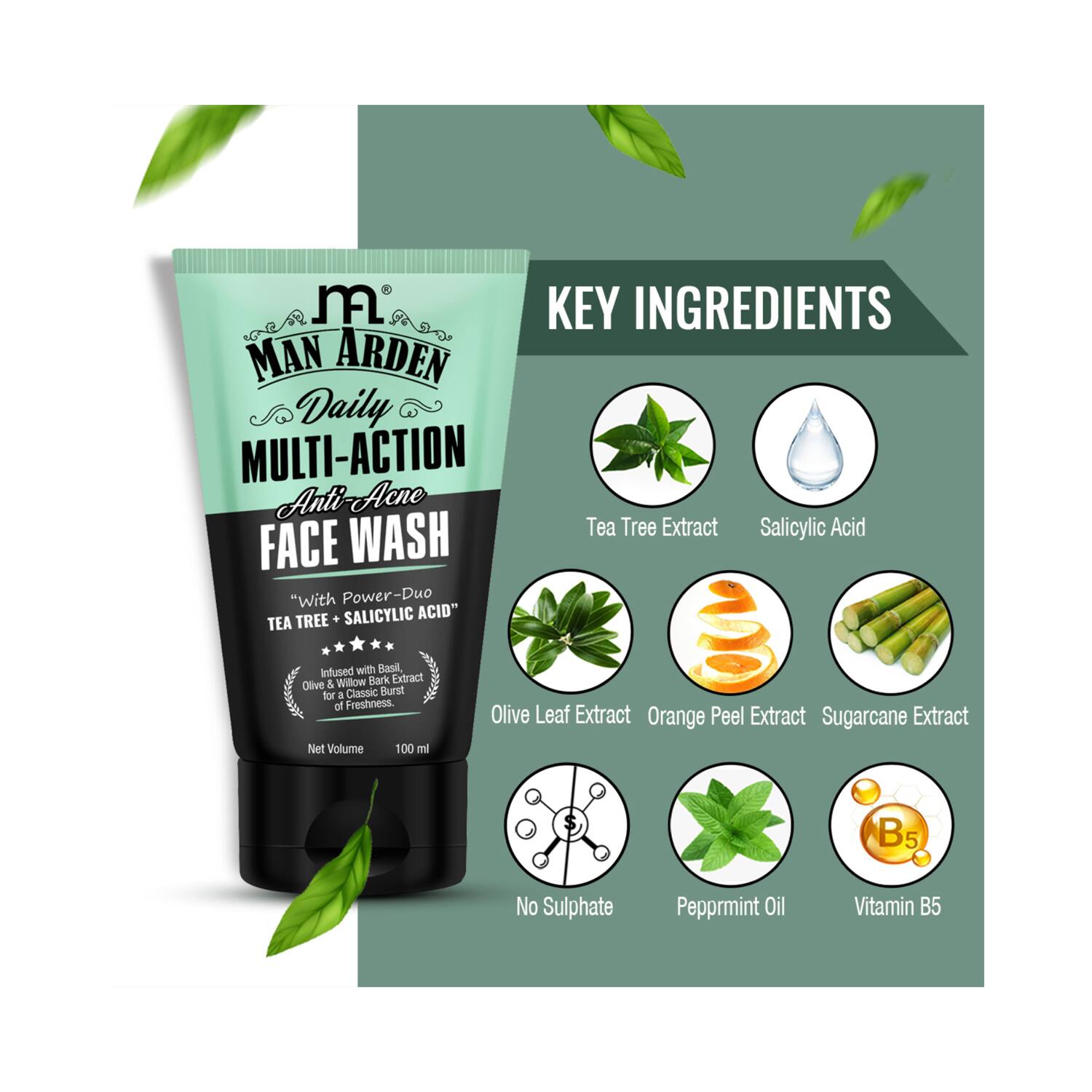 Man Arden Daily Multi-Action Anti-Acne Face Wash For Oily Skin With Power Duo Tea Tree & Salicylic Acid 1% (100ml)