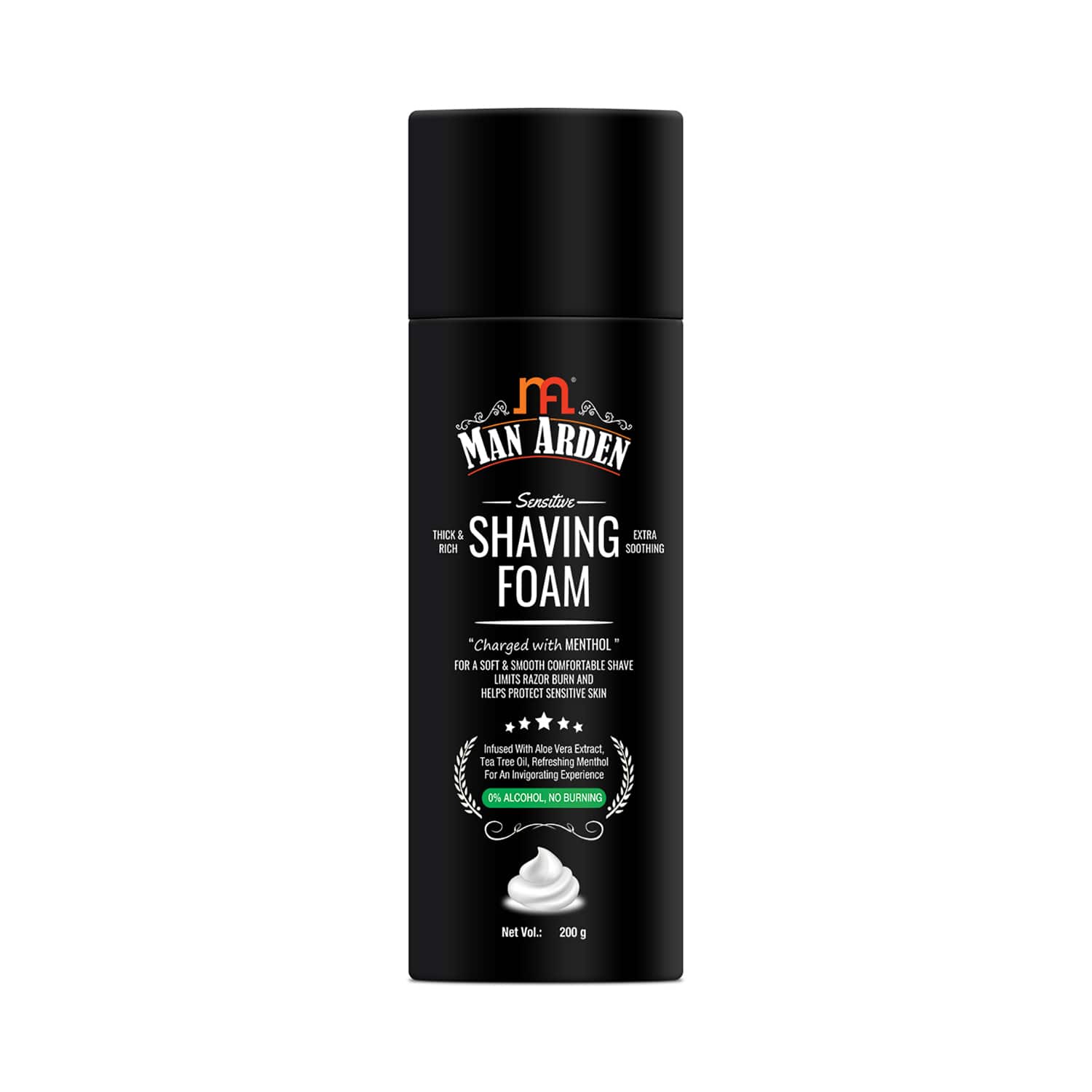 Man Arden Shaving Foam For Sensitive Skin Charged With Menthol, Aloe Vera & Tea Tree (200g)