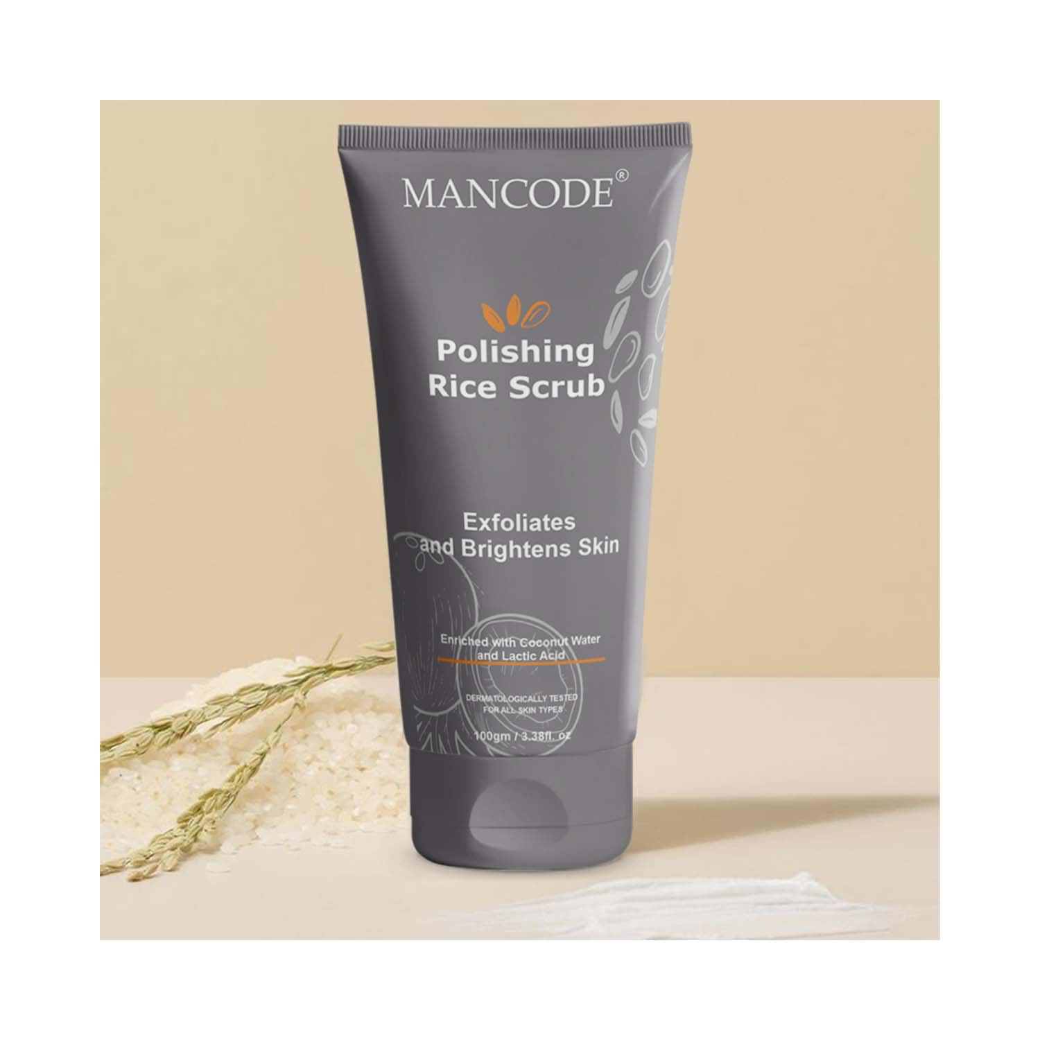 Elevate your facial regime with the Mancode Polishing Rice Face Scrub Exfoliates and Brightens Skin (100 g). This moisturizing scrub contains rice particles to exfoliate the skin and remove dead cells for a radiant complexion. The Mancode face scrub contains lactic acid that lightens the skin tone by reducing blemishes and scars. Plus, this antioxidant-rich face scrub contains coconut water packed with electrolytes, vitamin C, and antioxidants to recharge tired skin and moisturize it intensely.