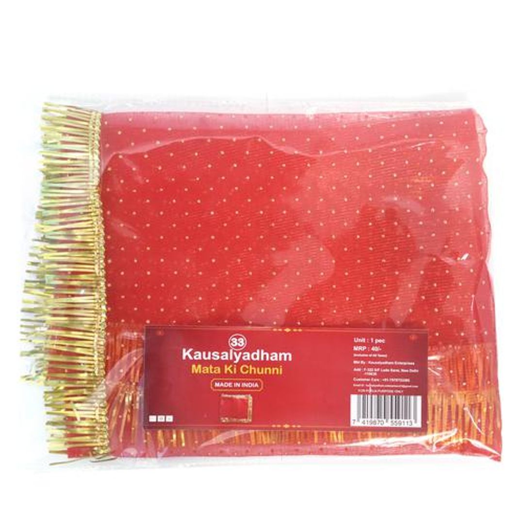 Mata Ki Chunni is made up of fine mesh. It has a soft netted cloth with golden lace. It is often offered to Goddess Mata; it can also be used for decorating your home temple or alter. It is a multipurpose chunni. Chunri is pleasing to matarani on Navratri, weddings on auspicious occasions, spiritual functions.