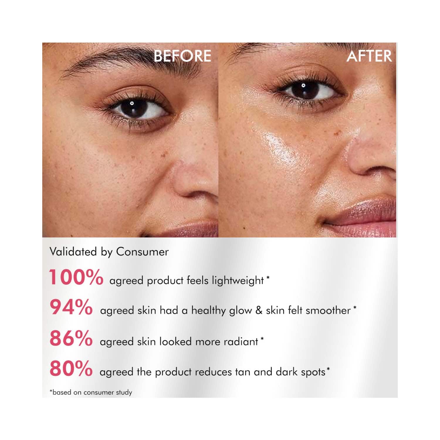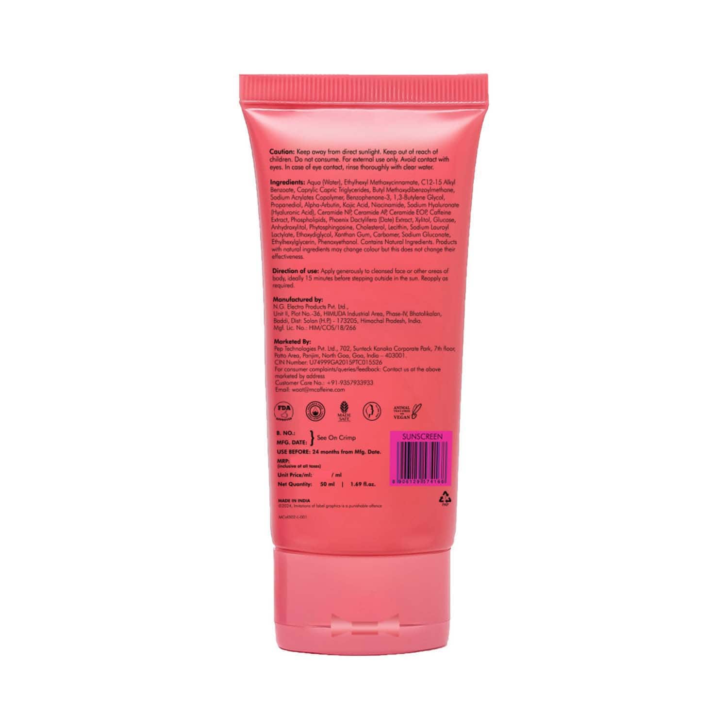 Key Features & Benefits:Infused with SPF 50 PA++++ for broad-spectrum protection from UVA, UVB, and blue light damageContains niacinamide, alpha arbutin, and kojic acid to fade blemishes and marks for brighter skinContains a blend of caffeine and ceramides to nourish and hydrate the skinNon-sticky, toxin-free sunscreen that absorbs quickly and leaves no white cast