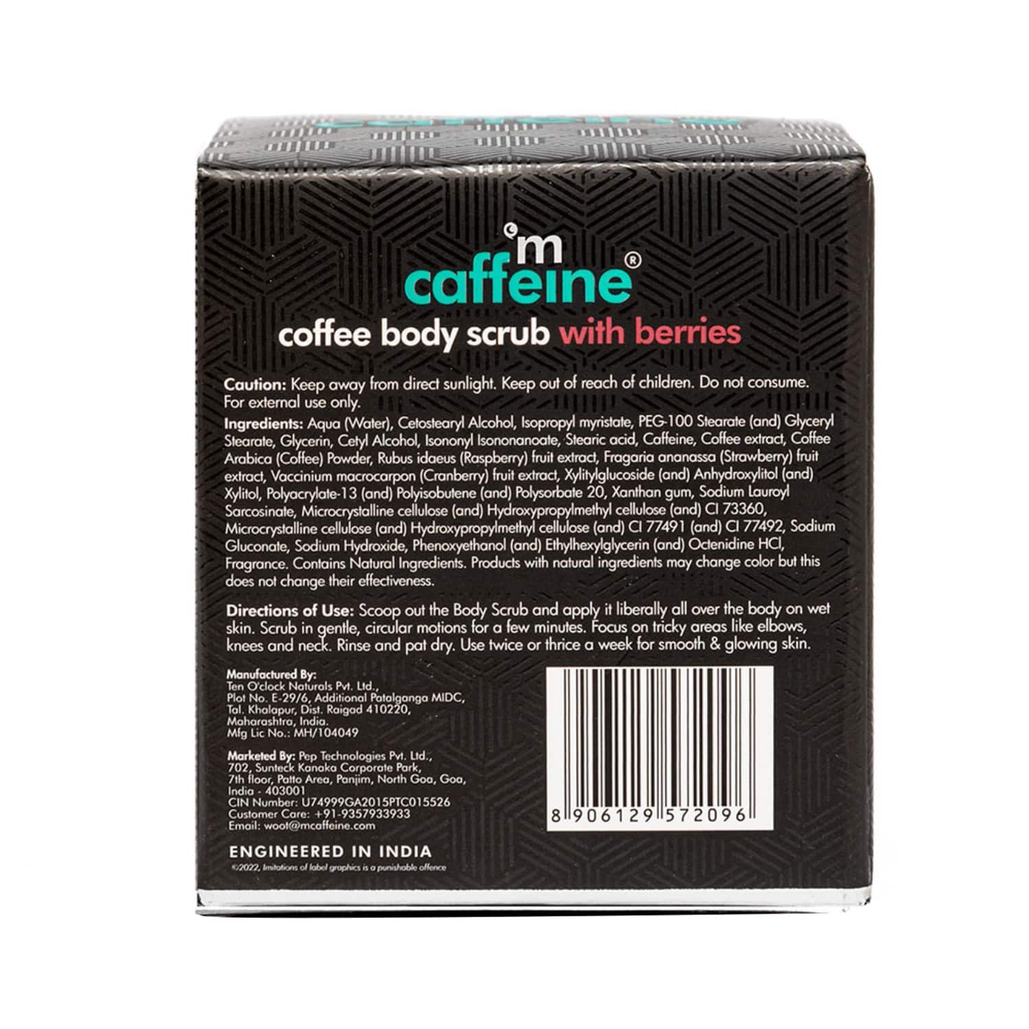 Soften your skin with the mCaffeine Coffee Body Scrub With Berries & Coffee Body Wash And Exfoliating Glove Non Woven Bag For Towel - (3 Pcs). This skincare set includes a body scrub, body wash, and exfoliating glove. The body scrub and body wash are infused with coffee grounds to hydrate and exfoliate the skin. Plus, they are dermatologically tested and free from parabens and SLS to ensure risk-free use.Key Features & Benefits:Includes a body scrub, body wash, and exfoliating glove for convenient useBody wash and scrub are infused with coffee grounds and berries to condition and exfoliate the skinRemoves dead skin cells and tanning to promote a radiant lookFree from parabens and SLS to ensure safe useKey Ingredients:Coffee and berries: Condition and exfoliate the skinHow to Use:Body wash: Take a quarter-sized amount of body wash in your palms. Apply it to wet skin and hair, and lather it up. Then wash the body wash off with water and pat dry.Body scrub: To use the body scrub, apply the product to your damp skin and rub the scrub in circular motions for a few minutes. Then, use warm water to clean it off.Exfoliating glove: Pour some drops of body wash into the bath glove. Create a rich lather and massage over your skin in a circular motion. Rinse well after use and get smooth and shiny skin.About the Brand:Vikas Lachhwani and Tarun Sharma founded Mcaffeine in 2015. MCaffeine is a personal care brand that provides caffeine-infused face, body, and hair care products. They believe in all skin and body prejudices. It redefines age-old notions of beauty associated with a color and never sells anxiety. Its personal care product portfolio includes shampoos, facial cleansers, shower gels, body lotions, and face masks, with caffeine as the primary ingredient. They are India's premier caffeine personal care brand with an exciting range of caffeine products for aspiring young millennials. Mcaffeine is a 100% vegan, cruelty-free, and PETA-approved brand.Check out more mCaffeine Body Scrubs & Exfoliants options here, or browse through tokocart's full range of Body Scrubs & Exfoliants from top global brands.You can also explore other products from the world of mCaffeine here on tokocart.