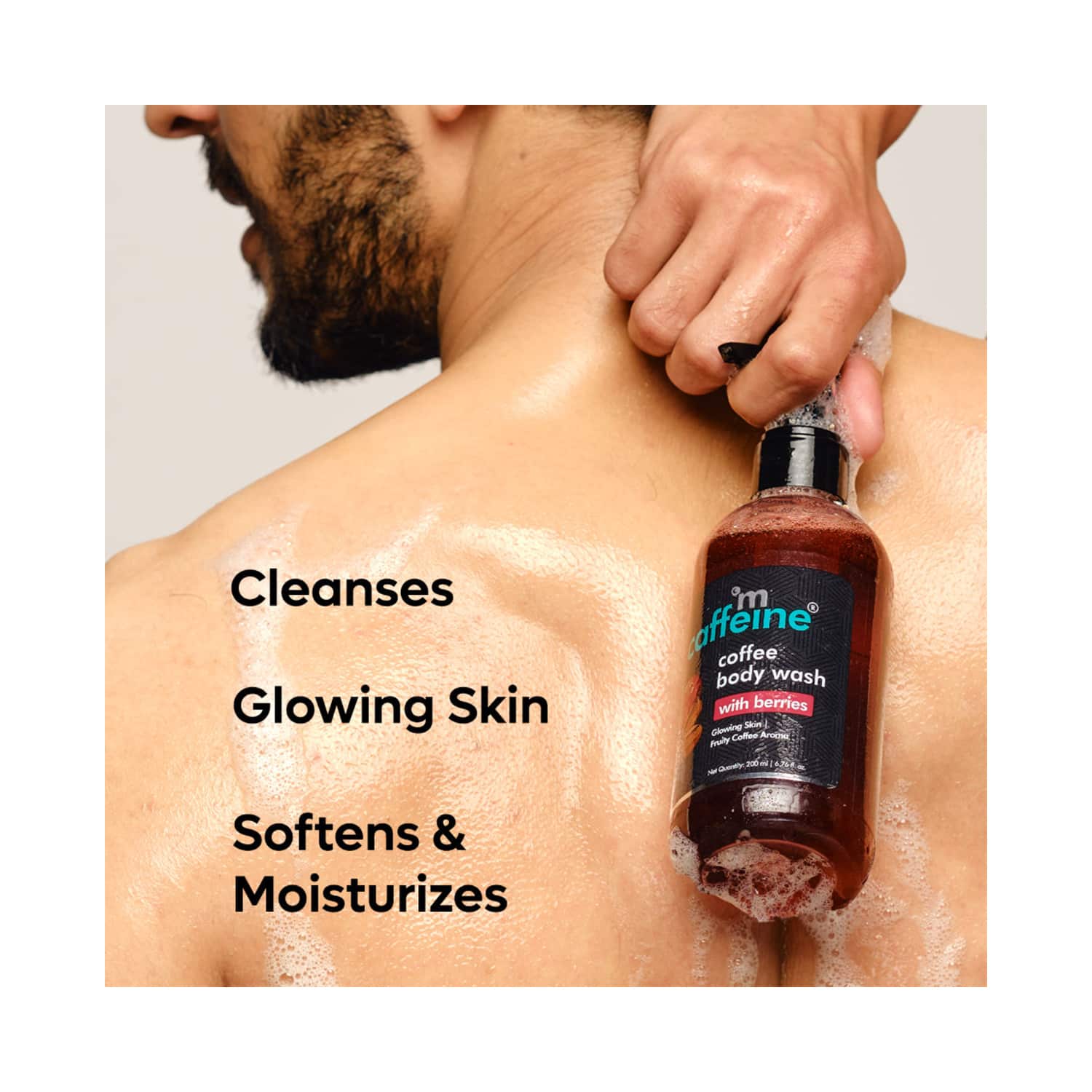 Indulge in a luxurious bathing experience with the MCaffeine Coffee With Berries Body Wash (200ml). Its rich formula is like a juicy burst of berries dipped in coffee, ready to cleanse and energize the skin. Packed with vitamin C and antioxidants, the nourishing body wash doesn't just leave your skin feeling clean but also helps restore moisture and protect it from environmental damage. Moreover, this MCaffeine coffee body wash is sulfate-free and gentle on all skin types.Key Features & Benefits:Infused with berries and coffee for a fruity and vibrant aromaLathers up into a luxurious foam to offer a gentle body cleanseGentle cleansing formula eliminates dirt and impurities for a soft and smooth skinSuitable for all skin typesKey Ingredients:Coffee and caffeine: Reduces inflammation and soothes and tones the skinVitamin E: Safeguards the skin against damage from the sun and pollutionBerries extract: Helps reduce signs of aging, protects the skin from free radical damage, and nourishes deeplyAll Ingredients:Aqua (Water), Cocamidopropyl Betaine (And) Sodium Methyl Cocoyl Taurate (And) Disodium Cocoyl Glutamate (And) Sodium Cocoyl Isethionate (And) Glycerin (And) Sodium Benzoate (And) Phenoxyethanol, Cocamide Mea, Coffee Extract, Caffeine, Rubus Idaeus (Raspberry) Fruit Extract, Fragaria Ananassa (Strawberry) Fruit Extract, Vaccinium Macrocarpon (Cranberry) Fruit Extract, Sodium Lauroyl Lactylate, Methoxy Cinnamido Propyl Hydroxysultaine, Tocotrienol (Vitamin E), Sodium Gluconate, Fragrance, Citric Acid, Ci 16035, Ci 42090, Ci 19140.How to Use:To start, pour the body wash on a wet loofah. After that, squeeze the loofah to create a lather and massage it on your damp skin. Then, rinse off the body wash with water and towel dry your body to get soft and fragrant skin.About the Brand:Vikas Lachhwani and Tarun Sharma founded Mcaffeine in 2015. MCaffeine is a personal care brand that offers caffeine-infused face, body, and hair care products. They believe in all skin and body prejudices. It redefines age-old notions of beauty associated with a color and never sells anxiety. Its personal care product portfolio includes shampoos, facial cleansers, shower gels, body lotions, and face masks, with caffeine as the primary ingredient. They are India's premier caffeine personal care brand with an exciting range of caffeine products for aspiring young millennials. Mcaffeine is a 100% vegan, cruelty-free, and PETA-approved brand.Check out more mCaffeine Body Wash & Shower Gel options here, or browse through tokocart's full range of Body Wash & Shower Gel from top global brands.You can also explore other products from the world of mCaffeine here on tokocart.