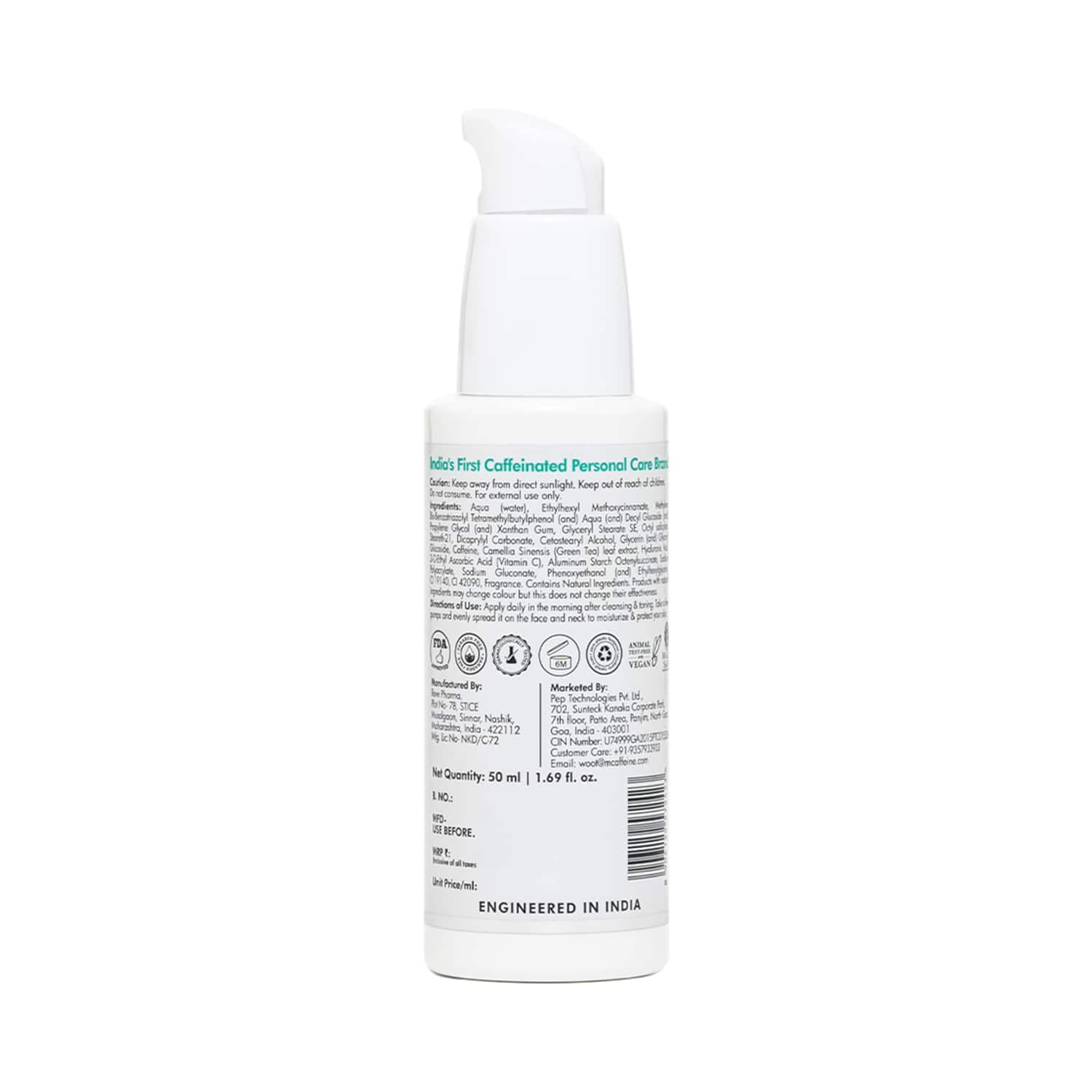 Key Features & Benefits:Contains caffeine, green tea extract, hyaluronic acid, and vitamin C to nourish and hydrate your skinFormulated to provide 24-hour moisture lockOffers 12-hour sun protectionPerfect for all skin types