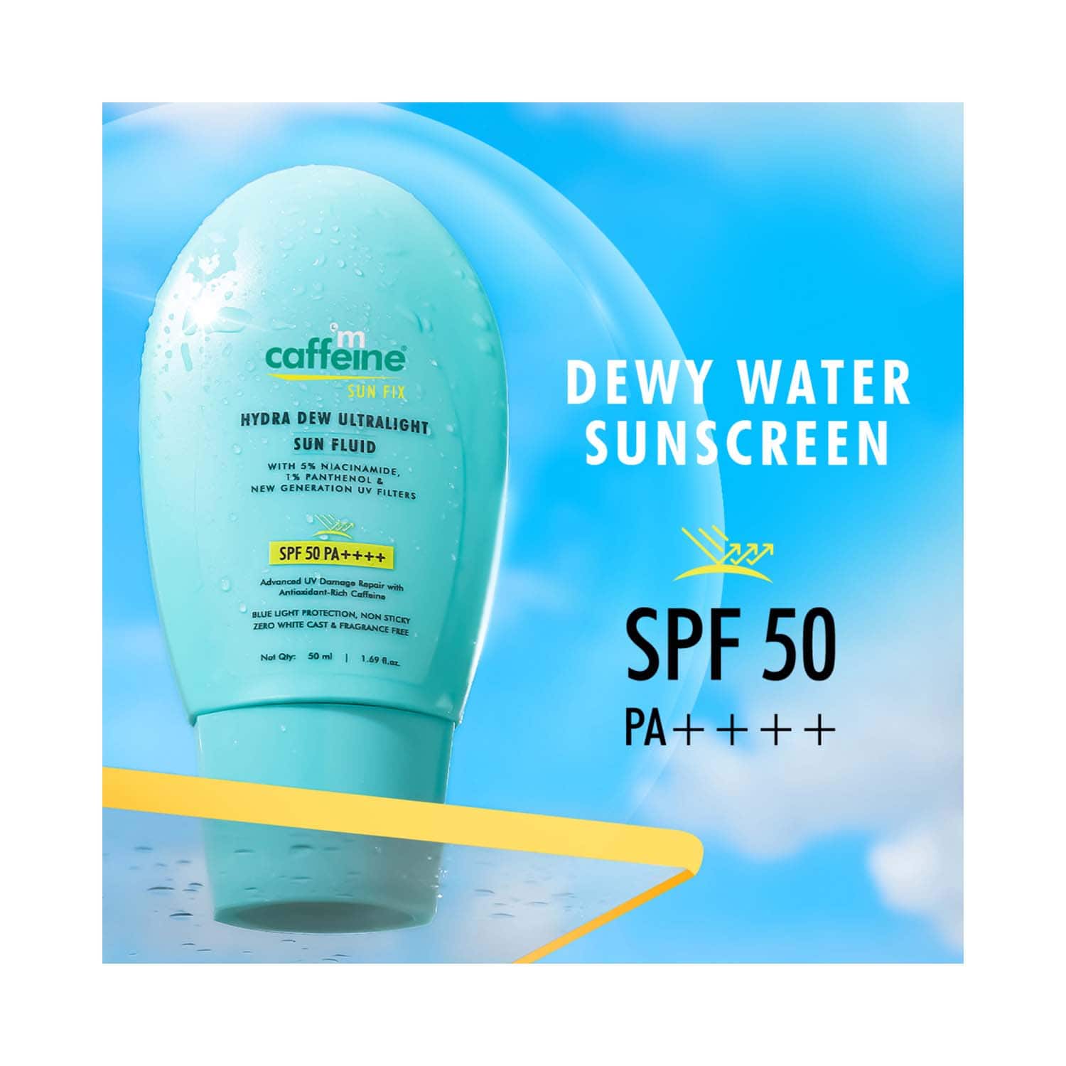 mCaffeine Hydra Dew Ultralight Sun Fluid SPF50 PA++++ UVA/UVB Blue Light Protection (50 ml)