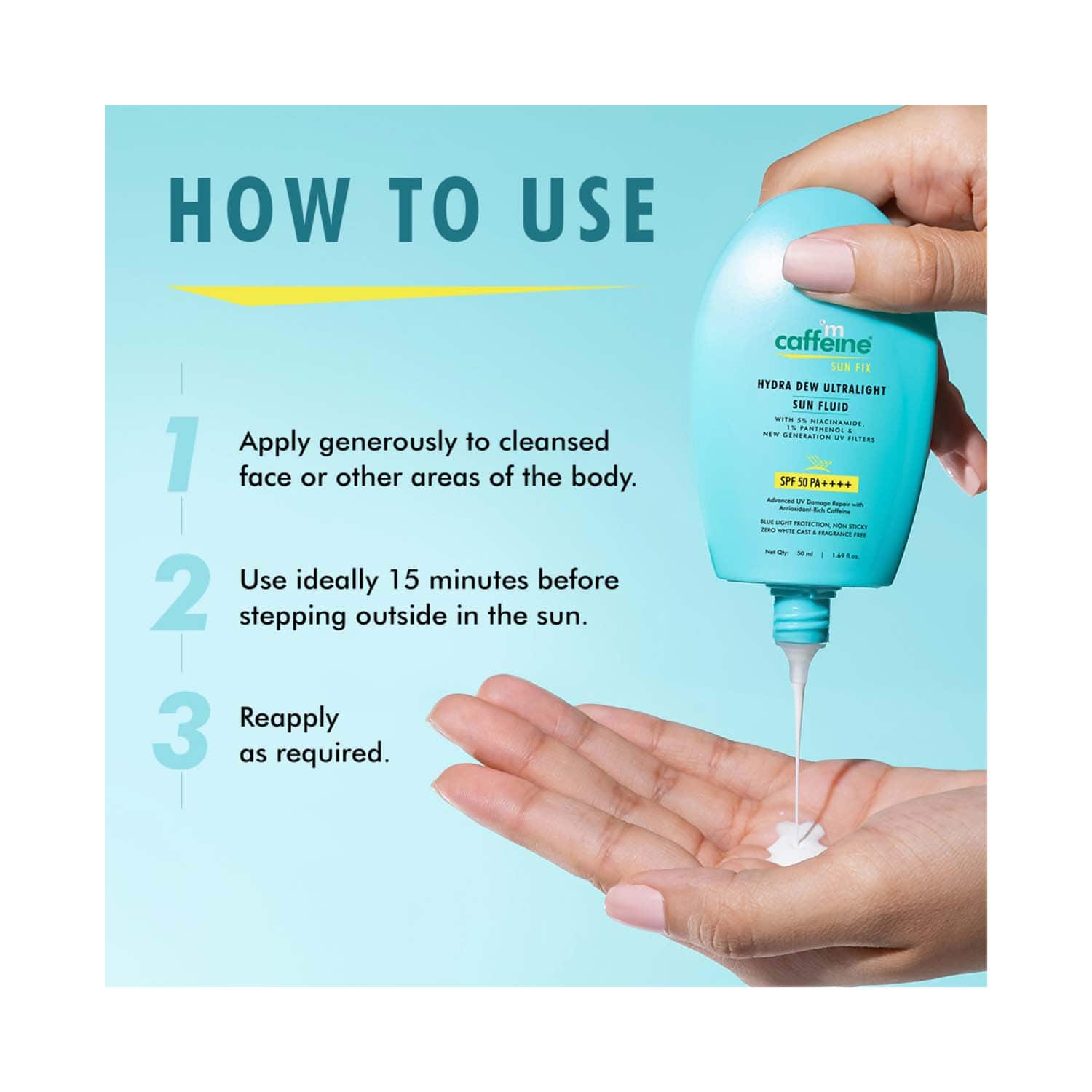 How to Use:Take a sufficient amount of sunscreen and dot it all over the face. Spread and massage it into the skin until it is fully absorbed. Make sure to apply sunscreen at least 15 minutes before sun exposure and reapply throughout the day as required.