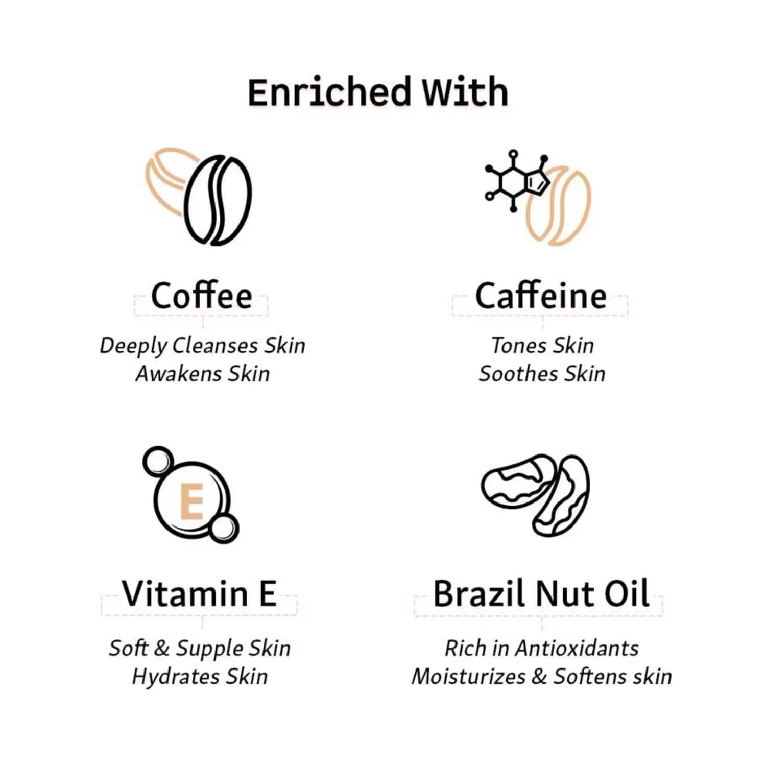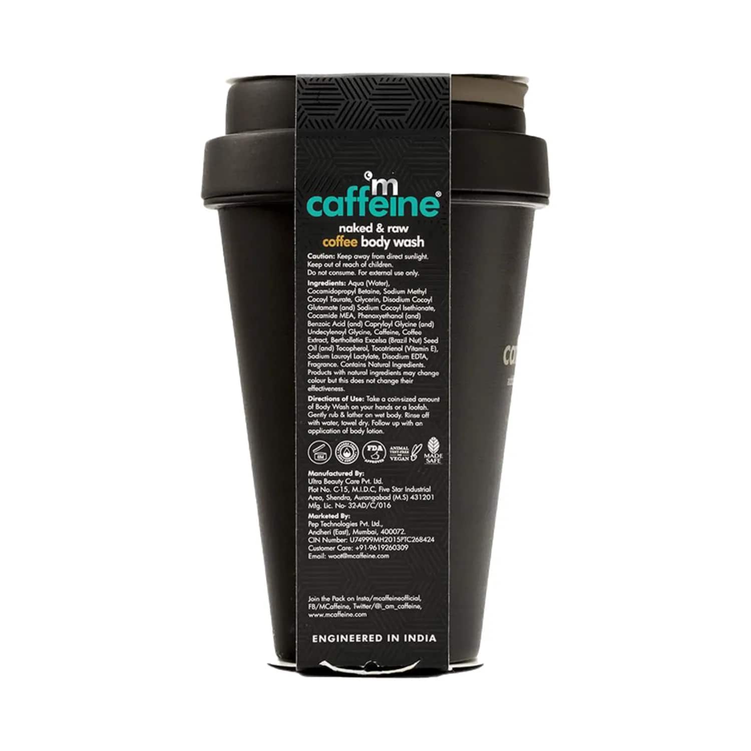 The mCaffeine Naked and Raw Coffee Body Wash - (300ml) is a renowned body care product for achieving an instant skin glow-up. It has a great quality to deeply cleanse, hydrate, moisturise, and refresh your skin. The mCaffeine coffee body wash comes in an attractive coffee cup packaging with natural and biodegradable properties. Infused with skin-friendly ingredients, this coffee body wash rejuvenates and revitalises your skin. In addition, it is an FDA-approved and PETA-certified cruelty-free body wash that ensures safe use.Key Features & Benefits:Enriched with pure Arabica coffee, caffeine, vitamin e, and Brazil nut oil to nourish and smoothen the skinExudes the aroma of raw coffee beans and ground nutsMade safe coffee body wash comes with a natural and biodegradable coffee cup packagingFree from paraben and SLSFormulated with a skin-friendly pH balanceDermatologically tested body wash for safe use on skinKey Ingredients:Pure Arabica CoffeeDeeply cleanses and awakens the skinCaffeineTones and soothes the skinVitamin EEnsures skin softness and supplenessBrazil Nut OilMoisturises and softens the skinHow to Use:Start by taking a pea-sized amount of Naked and Raw Coffee Body Wash on your hands or a natural loofah. Glide it on the wet body in a gentle way and create lather for a few minutes. Then, rinse the body wash with water and towel dry your body. You can also follow it up by applying body lotion to get desired results.All Ingredients:Aqua (Water), Cocamidopropyl Betaine, Sodium Methyl Cocoyl Taurate, Glycerin, Disodium Cocoyl Glutamate (and) Sodium Cocoyl Isethionate, Cocamide MEA, Phenoxyethanol (and) Benzoic Acid (and) Capryloyl Glycine (and) Undecylenoyl Glycine, Caffeine, Coffee Extract, Bertholletia Excelsa (Brazil Nut) Seed Oil (and) Tocopherol, Tocotrienol (Vitamin E), Sodium Lauroyl Lactylate, Disodium EDTA, Fragrance, Colour.About the Brand:Launched in 2015, mCaffeine is a personal care brand with a wide range of caffeinated products. Its products are made using FDA-approved ingredients, free from SLS and parabens, and dermatologically tested for safe use. Each product is created with the goodness of caffeine and other active ingredients for the best results. mCaffeine focuses on redefining the age-old notions of beauty and helping everyone feel confident in their own skin.Check out more mCaffeine Body Wash & Shower Gel options here, or browse through tokocart's full range of Body Wash & Shower Gel from top global brands.You can also explore other products from the world of mCaffeine here on tokocart.