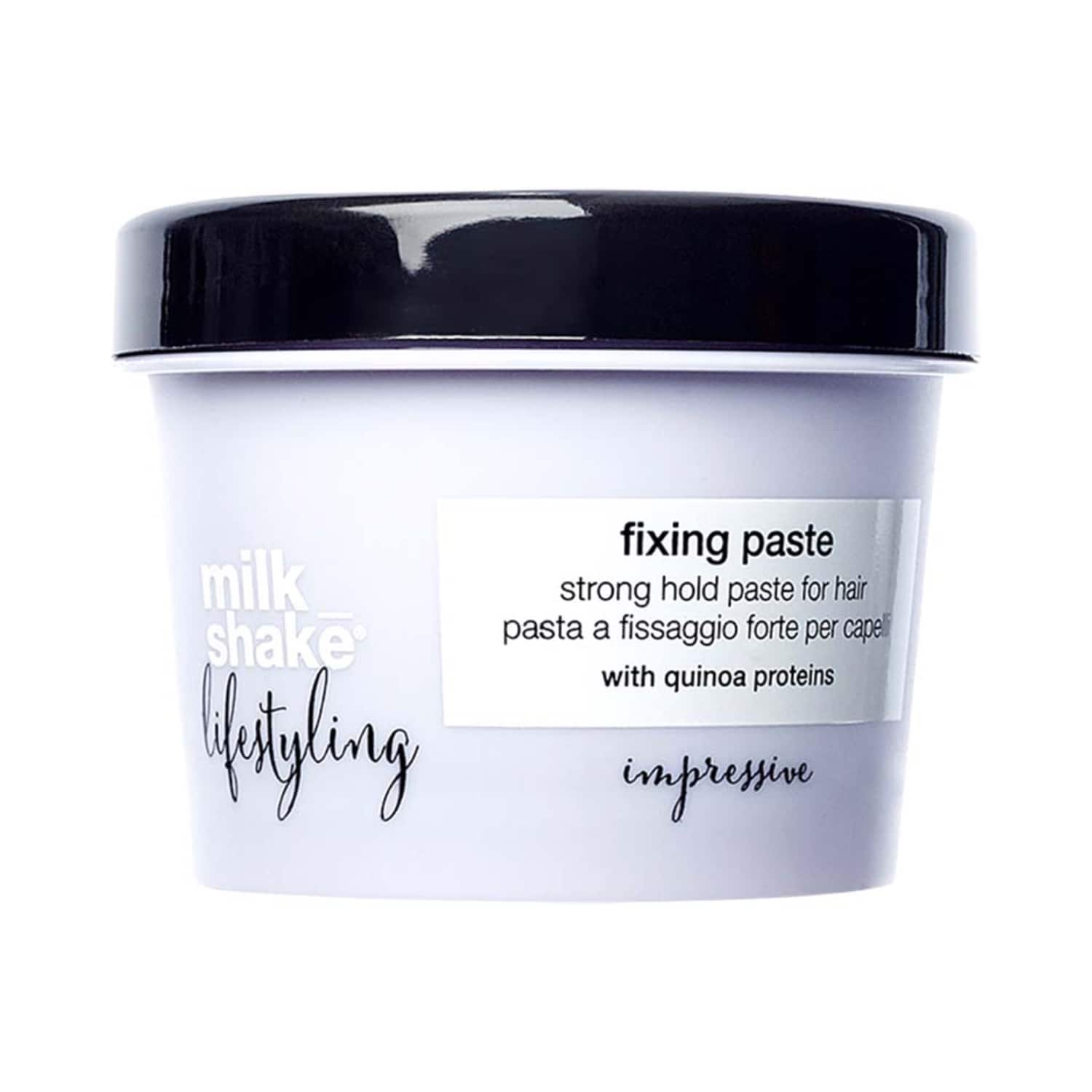 Flaunt your hair with the Milk Shake Lifestyling Fixing Paste (100ml). This nourishing hair-fixing paste improves the natural texture of your hair. It is a strengthening hair cream ideal for protecting the hair fiber. The Milk_Shake hair paste is a hair-conditioning cream that smoothens hair by combining high-quality natural ingredients.Key Features & Benefits:Infused with quinoa protein to prevent hair color fadingHair-protecting cream prevents free radical damageHair-shining cream provides long-lasting shine to your hairEasy-to-apply hair paste for hassle-free applicationKey Ingredients:Milk protein: Strengthens the hairQuinoa protein: Protects hair colorIntegrity 41: Saves hair from free radical damageAll Ingredients:Aqua (Water), Lanolin Cera (Lanolin Wax), Petrolatum, Ceteareth-25, Vp/Va Copolymer, Alcohol Denat., Cera Alba (Beeswax), Ozokerite, Vinyl Caprolactam/Vp/Dimethylaminoethyl Methacrylate Copolymer, Copernicia Cerifera Cera (Copernicia Cerifera (Carnauba) Wax), Cetearyl Alcohol, Parfum (Fragrance), Tocopheryl Acetate, Ethylhexyl Methoxycinnamate, Hydrolyzed Milk Protein, Pyrus Malus (Apple) Fruit Extract, Citrus Limon (Lemon) Fruit Extract, Vaccinium Myrtillus Fruit Extract, Helianthus Annuus (Sunflower) Seed Extract, Hydrolyzed Quinoa, Phenoxyethanol, Imidazolidinyl Urea, Caprylyl Glycol, Glycine, Sodium Lactate, Sodium Citrate, Sodium Benzoate, Potassium Sorbate, Citric Acid, Butylene Glycol, Benzyl Alcohol, Coumarin, Hexyl Cinnamal, Limonene, Linalool.How to Use:Apply the cream to damp hair and style accordingly.About the Brand:Milk Shake is a part of the z-one concept group, an Italian company that offers professional salon hair care products to enhance and maintain the hair's natural beauty. Their organic and cruelty-free products provide the benefits of milk and fruit to satisfy the requirements of their worldwide customers. Their wide range of products, like shampoos, hair color, lighteners, and conditioners, incorporate nature-derived ingredients that are highly effective yet gentle on the hair. They formulate products that cater to every customer's unique hair texture, color, length, and style. Milk Shake's professional salon-quality products are packed at the highest concentration levels to ensure maximum results at home or in a salon. The brand promises to transform dry, brittle, and unhealthy hair into shiny, silky, luscious tresses that are manageable with their fun-to-use organic, fragrant, and superior-quality products.
