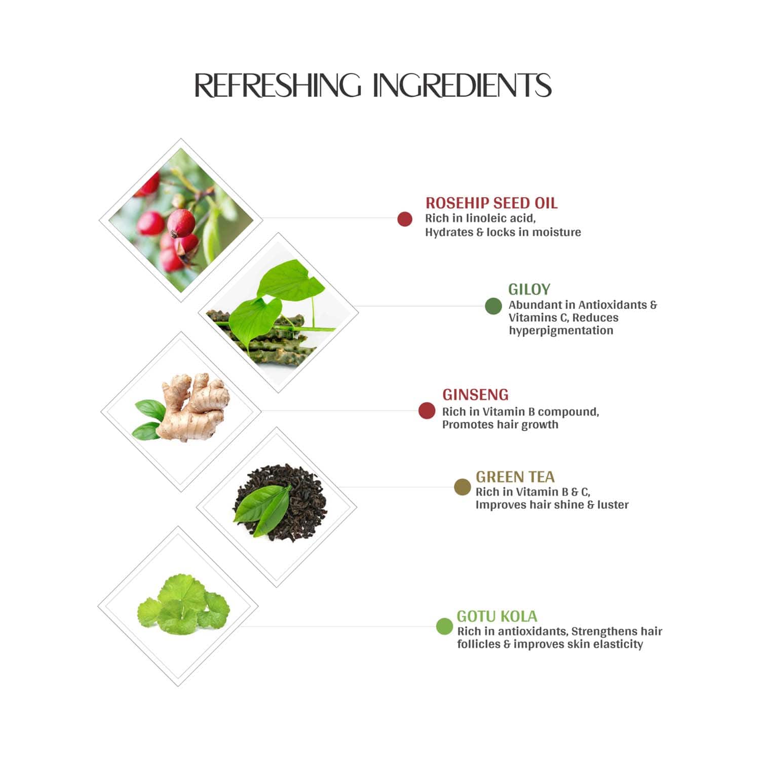 Key Ingredients:Alpha bisabolol: Soothes, calms, and comforts, and cleanses the skinRosemary oil: Revitalizes the hair and bodyBiopeptide: Nourishes and restores the skin and hair health, supports skin elasticity, and promotes a youthful appearanceCalendula extract: Has anti-inflammatory properties and nourishes the skinRosehip seed oil: Replenishes and hydrates the skinCeramides: Hydrate and protect the skin barrierHyaluronic acid, nano collagen, alpha arbutin, niacinamide, and green tea extract: Protect the skin and hair from hard water and pollution and replenish lost moistureJasmine oil, licorice, gotu kola, bilberry, and lemon peel: Nourish and moisturize the skin and promote voluminous, strong, and shiny hairPhyto collagen: Rich in amino acids and promotes skin elasticityGiloy: Has antioxidants and fights hyperpigmentationGinseng: Promotes hair growth
