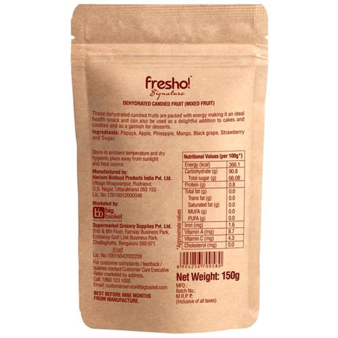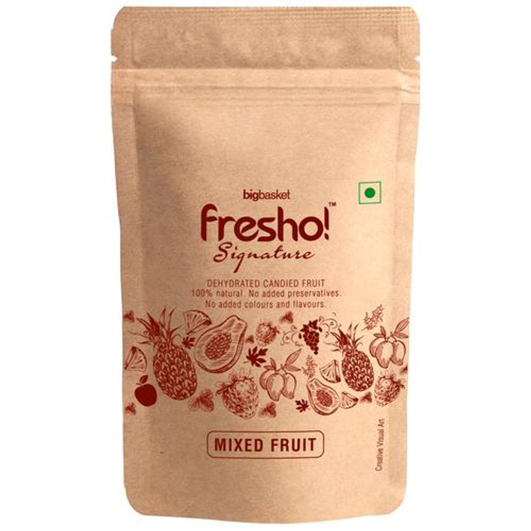 About the ProductFresho Signature presents an array of dry fruits apart from the ordinary to give you the best of the best to indulge. Want to try something other than a regular fruit? This sweetened dry fruit mix is a healthy alternative to munch on when hunger strikes. It contains papaya, apple, pineapple, mango, black grape, strawberry and sulphurless sugar. Easy to carry, it makes a great snack to keep you going throughout the day.