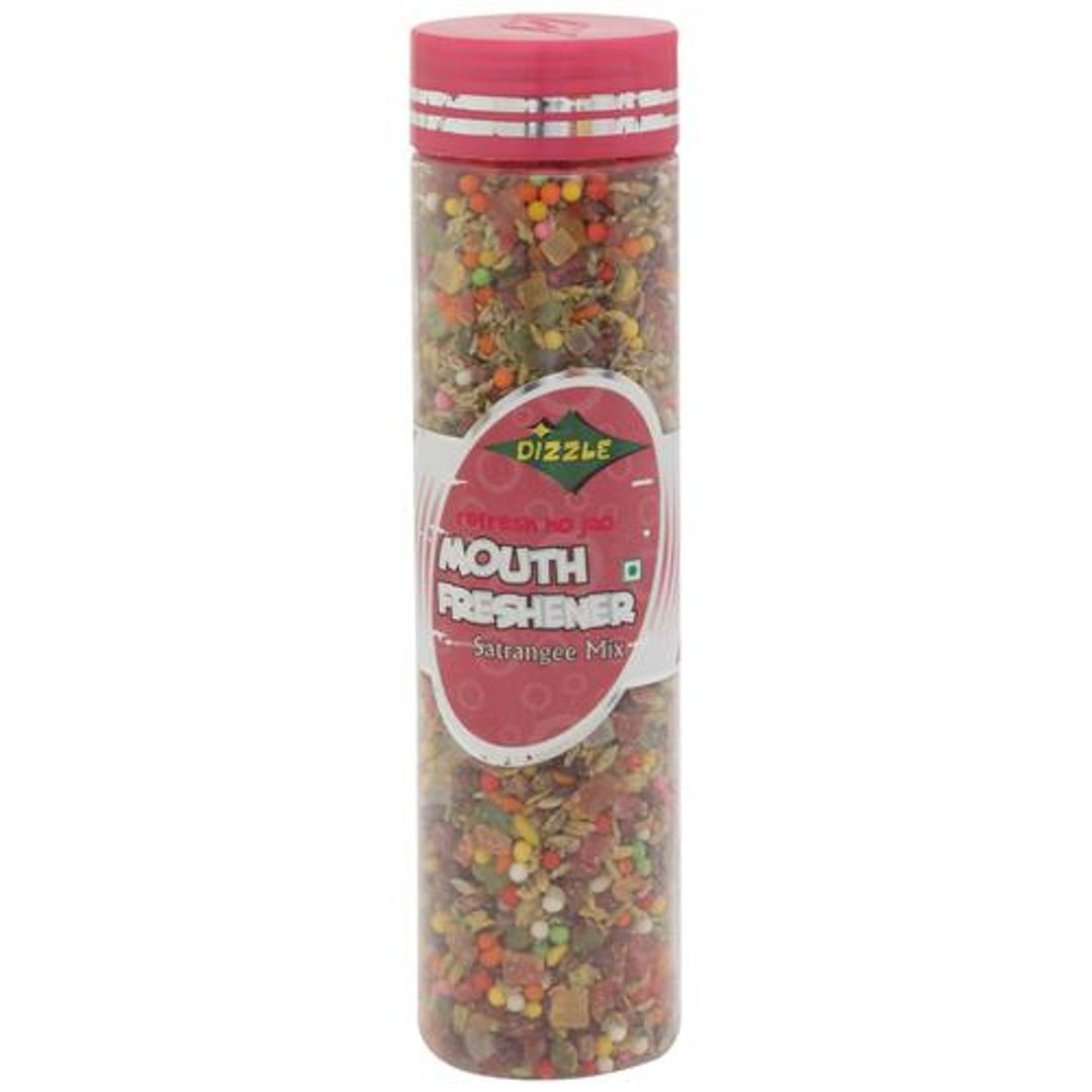 Dizzle Strange Mix is a mixture of Dry Papaya, Dry dates, Aniseed, sugar pills, Tooty Fruity, Mishri and sugar etc. This is refreshing in taste as it contains rose flavor. It’s used post meal as mouth freshener. Dizzle is a leading national brand for mouth fresheners. We bring best quality mouth fresheners for you in multiple variety