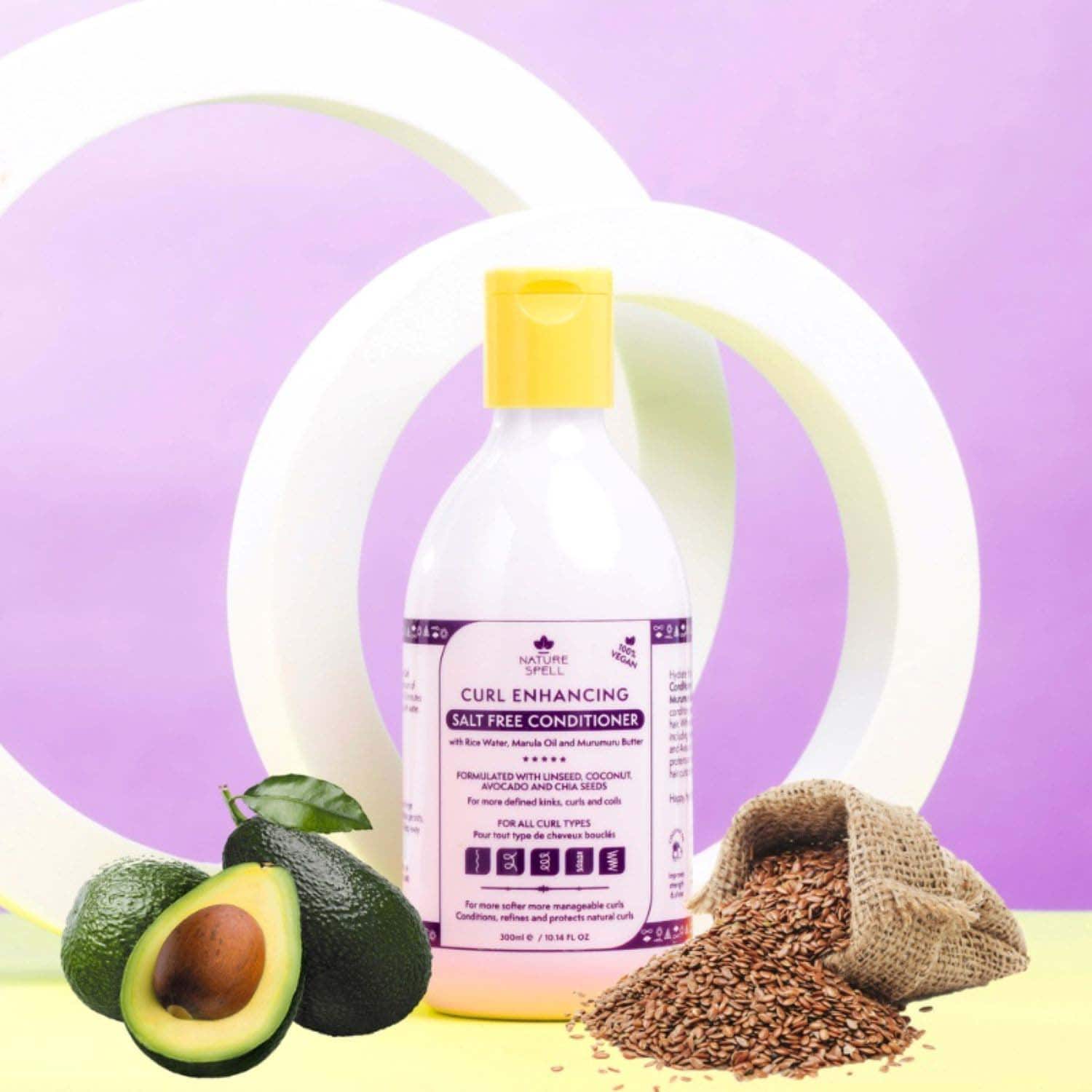 Celebrate your curls with the $. Enriched with natural marula oil, murumuru butter, and rice water, this curl enhancer deeply conditions, nourishes, and repairs dry, damaged hair. Infused with cocoa butter, shea butter, and avocado oil, it strengthens and softens the hair cuticle from the inside out, leaving them defined, silky, and vibrant.Key Features & Benefits:Infused with marula oil and murumuru butter to deeply hydrate, nourish, and repair dry, weakened curls$Contains cocoa butter, shea butter, and avocado oil to provide essential proteins and nutrients, strengthening and softening hair from the inside out$Enriched with rice water extract to enhance hair elasticity, define curls and boosts their natural bounce$Gentle formula effectively removes build-up for healthier, more vibrant curls$Caters to a diverse range of curl patterns and texturesKey Ingredients:Rice water: Increases hair elasticity and defines curls$Marula oil: Maintains a healthy scalp and provides rich moisturization$Murumuru butter: Deeply hydrates hair, preventing frizz$Linseed: Promotes healthy hair follicles for stronger growth$Coconut oil: Improves hair strength and adds shine$Chia seeds: Restores hair protein for thicker and stronger mane$Cocoa butter: Smooths hair and prevents frizz$Shea butter: Hydrates both hair and scalp$Aloe vera: Locks in moisture for long-lasting hydrationHow to Use:After cleansing with Nature Spell's Curl Enhancing Shampoo, apply a generous amount of conditioner to your hair's length, leaving it on for 5 to 10 minutes for optimal absorption. Rinse thoroughly with water, then proceed with the Curl Enhancing Mask for added nourishment.All Ingredients:Aqua (Water), Cetearyl Alcohol, Persea Gratissima (Avocado) Oil,
