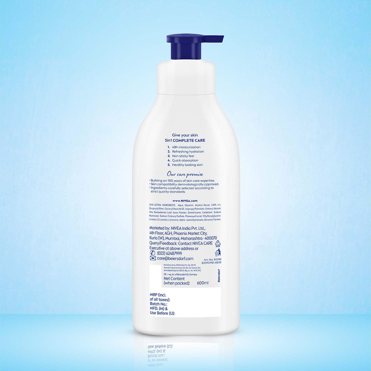 Bid goodbye to dry skin with the Nivea Aloe Hydration Body Lotion - (600ml). It is enriched with aloe vera extract and deep moisture serum to leave your skin feeling soft and supple after every use. This lightweight body lotion quickly absorbs into the skin for intense hydration. Formulated especially for dry skin, this Nivea body lotion locks in moisture for 48 hours and refreshes the skin from within.Key Features & Benefits:Moisturizing body lotion keeps skin soft and suppleEnriched with aloe vera extract and deep moisture serum to hydrate skinLightweight formula absorbs quickly48 hours moisture lock keeps dryness at bayBest suited for normal and dry skin typesKey Ingredients:Aloe vera: Moisturizes skinHow to Use:Take an adequate amount of body lotion and evenly put it all over your body. Then, massage gently until absorbed. Apply twice daily for the best results.All Ingredients:Aqua, Glycerin, Alcohol Denat. (4. 80% [V/V]), Dicaprylyl Ether, Glyceryl Stearate Se, Isopropyl Palmitate, Cetearyl Alcohol, Aloe Barbadensis Leaf Juice Powder, Dimethicone, Carbomer, Sodium Hydroxide, Sodium Cetearyl Sulfate, Phenoxyethanol, Ethylhexylglycerin, Linalool, Citronellol, Limonene, Alpha-Isomethyl Ionone, Geraniol, PerfumeAbout the Brand:Founded in 1911, Nivea started its journey from Nivea creme, its first product launch. With more than 130 years of experience, Nivea is a widespread German personal care brand specializing in skin and body care. This German brand dominates the Indian skin care market under the name Nivea India Pvt. Ltd. The brand offers skincare solutions for men and women. They have a wide range of products to serve different segments of the skincare market. Nivea has also established a brand with hardcore values ??that are uncompromising no matter what. The brand is known for not using animal fats in its products. Nivea strives to use safe, healthy, and environmentally-friendly ingredients for their offerings with a 'skin comes first'-approach.Check out more Nivea Body Lotions & Moisturisers options here, or browse through tokocart's full range of Body Lotions & Moisturisers from top global brands.You can also explore other products from the world of Nivea here on tokocart.