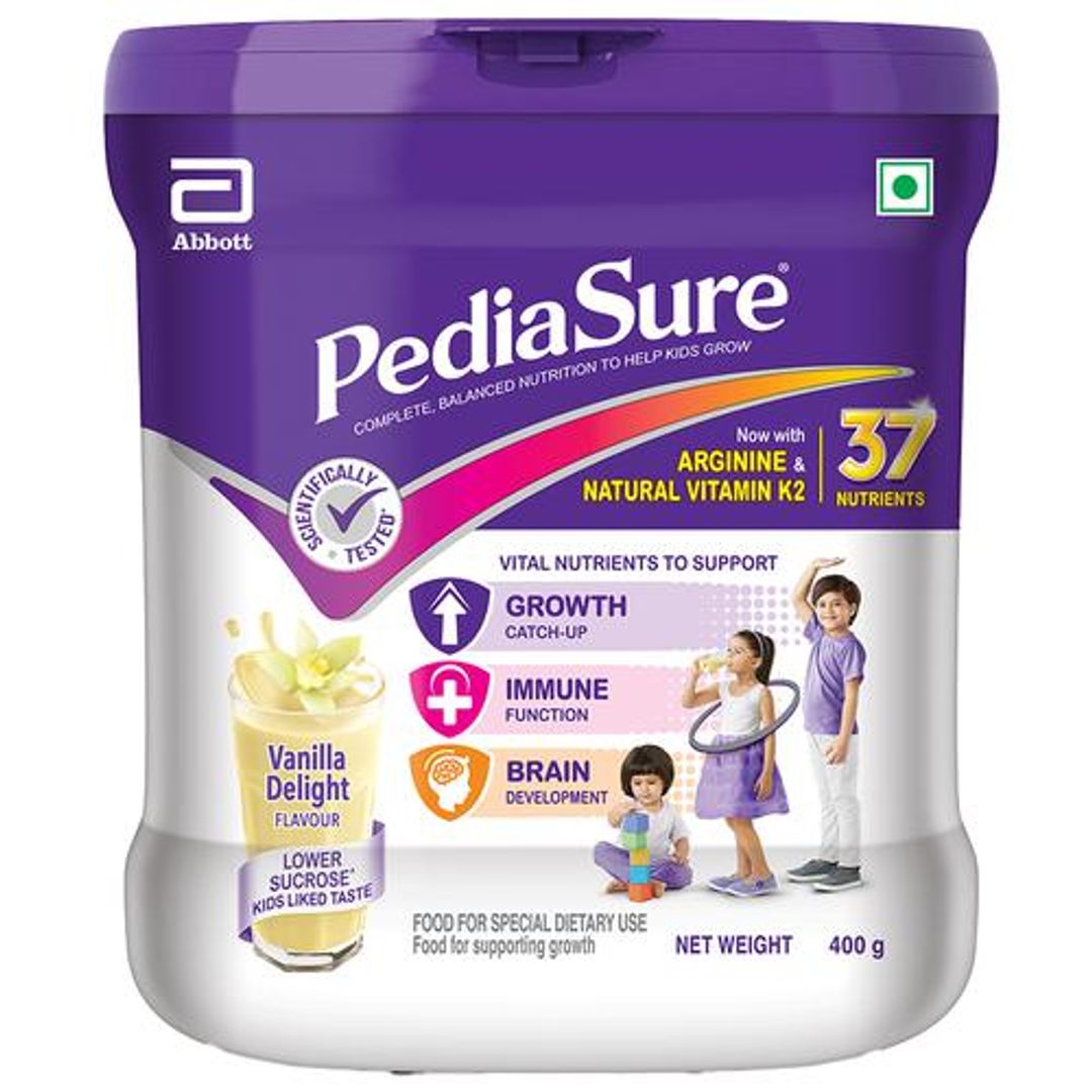 Pediasure vanilla delight nutritional powder supplements perform as an alternate for the failure of nutrients that the body needs for balanced nutrition. Pedia sure contains the ideal amount of the macro and micronutrients needed to be packed up because of unhealthy habits or otherwise not gained due to modifying eating habits. It appears in a vanilla flavor that includes to the taste of the supplement, and children are tired to the taste and sweet smell creating the drink irresistible. It includes all the required nutrients, proteins, vitamins and calcium that your child needs and it is the most excellent replacement for aiding them in their growth and development.