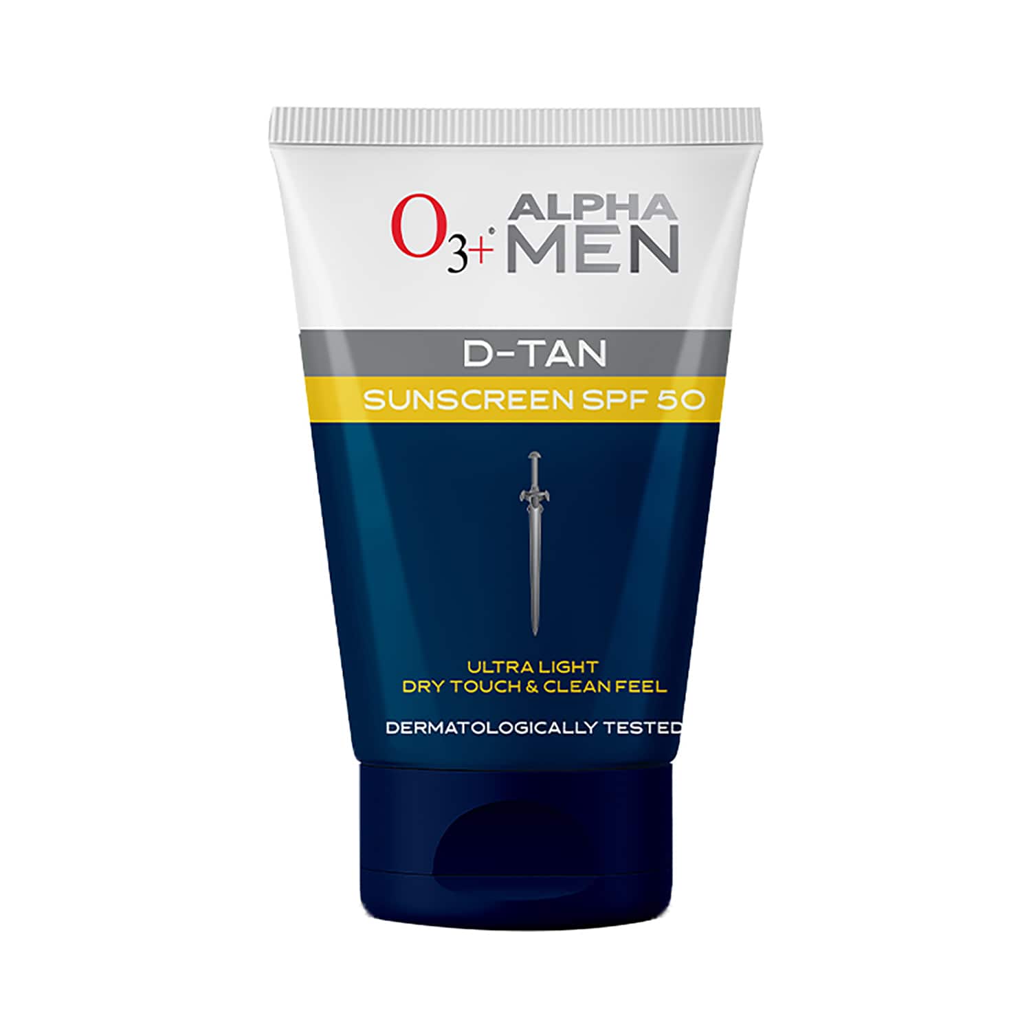 Enjoy your days under the sun worry-free with the O3+ Alpha Men D-Tan Sunscreen SPF 50 (50g). This non-sticky sunscreen has a lightweight texture for all-day comfort. Also, this O3+ men's sunscreen has SPF 50 for complete protection from UV rays for up to 8 hours. Plus, it contains hyaluronic acid, niacinamide, and ceramide to treat sun damage, reduce wrinkles and fine lines, and retain moisture in the skin while preventing the entry of germs. Key Features & Benefits:Infused with hyaluronic acid, niacinamide, and ceramide to heal sun damage, reduce wrinkles, and prevent the entry of germsLightweight sunscreen does not leave behind any sticky residueHas SPF 50 for broad-spectrum protection from UV raysLong-lasting sunscreen offers up to 8 hours of protection Key Ingredients:Niacinamide: Helps to treat damage caused by sunlight and pollutionHyaluronic acid: Hydrates the skin, improves its elasticity, and reduces wrinklesCeramide: Retains moisture in the skin and prevents entry of germs All Ingredients:Niacinamide, Hyaluronic Acid, Ceramide. How to Use:Take an adequate amount of sunscreen on your palm. Dab it over your face and neck and massage it in a circular motion until absorbed completely. If you apply makeup later, wait five minutes after applying the cream for better absorption. About the Brand:Founded in 2005 by Vineet Kapur, O3+ is a professional hair and skincare brand from India. It offers a wide range of products, from cleanses and moisturizers to shampoos and hair colors. The brand believes in three things, namely, education, innovation, and business growth. Each product of O3+ is made after thorough clinical studies and advanced research. Their products are derma grade to resolve every skincare woes effectively.Check out more O3+ Sunscreen options here, or browse through tokocart's full range of Sunscreen from top global brands.You can also explore other products from the world of O3+ here on tokocart.