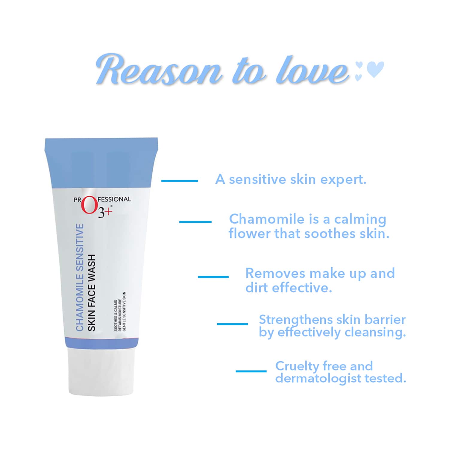 Discover the perfect solution for soft, balanced skin with the O3+ Chamomile Sensitive Face Wash (60g). This chamomile facewash eliminates makeup and dirt and helps strengthen the skin barrier. It is a soothing facewash that calms irritated and inflamed skin. The O3+ facewash is also a brightening face cleanse that provides glowing skin.
