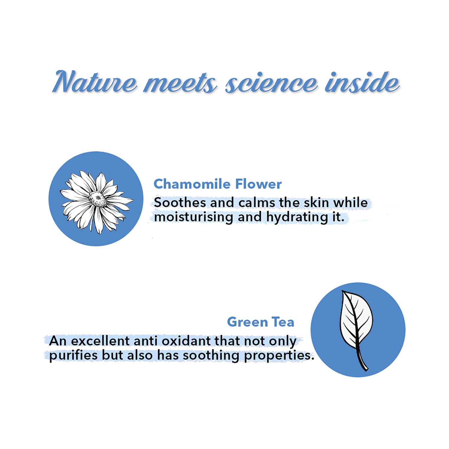 Key Features & Benefits:Infused with chamomile flower to reduce redness and irritationHelps to strengthen the skin barrier to fight external aggressorsRemoves dirt and impurities for clear skinHydrating facewash provides soft and supple skinFree of paraben and gluten for safe use