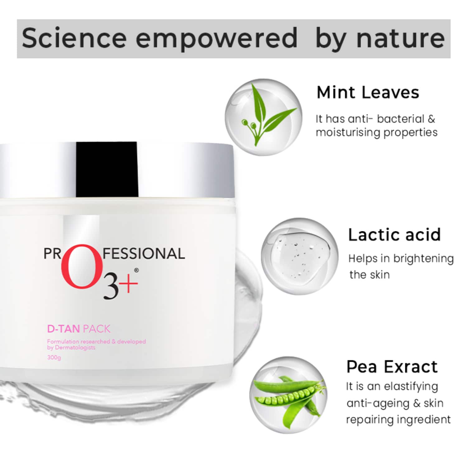An award winning product for most instant whitening results. The O3+ Tan Removal Pack has 8 benefits in just 1 jar as it hydrates, nourishes, soothes, calms, heals, whitens, brightens and lightens the skin. The goodness of mint and eucalyptus oil cleanses the skin while providing instant brightening and lightening benefits.Key Features & Benefits:D-tan face pack for a fairer and radiant complexion