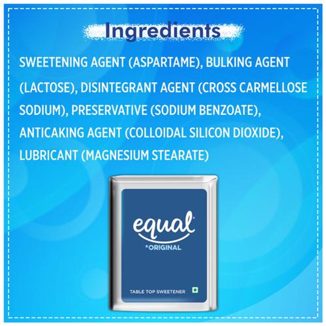 Sugar alternative: an ideal sugar substitute as 1 tablet of equal low-calorie sweetener gives sweetness equivalent to 2 tsp of sugar