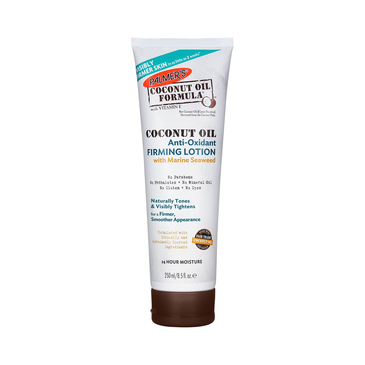 Achieve visibly firmer skin in just 4 weeks with the Palmer's Coconut Oil Formula Antioxidant Firming Lotion (250ml). This anti-aging body lotion is enriched with antioxidant-rich potent botanicals to naturally tone, tighten, and firm the skin for a youthful appearance. In addition, This intensely moisturizing lotion hydrates and encourages circulation for healthy and supple skin for up to 24 hours.Key Features & Benefits:Potent botanicals help ease fluid retention and encourage circulation for a healthier appearanceNaturally tones and tightens the skin for a smoother, firmer look in 4 weeksHydrates and replenishes skin for up to 24 hoursMade with ethically and sustainably sourced ingredients for reliable useClinically tested, vegan, cruelty-free, and free from parabens, mineral oil, sulfates, dyes, and phthalates for safe useKey Ingredients:Extra virgin coconut oil and vitamin E: Moisturize, nourish, boost radiance, and soften skinSeaweed extract: Helps ease fluid retention and firms skinSweet almond oil: Improves elasticity and helps tone the skinCaffeine: Enhances circulationHow to Use:Apply the lotion generously all over your body multiple times a day as required. Massage it in until fully absorbed.All Ingredients:Fair Trade Certified Organic Extra Virgin Coconut OilAbout the Brand:Founded over 175 years ago, Palmer's is one of the first skincare brands introduced in America and was formed by E.T. Browne Drug Co. Inc.- a company that provides treatment-oriented beauty products. Palmer's curates skin and hair care solutions with high-quality, natural ingredients and effective formulas and makes them available at an affordable price. The brand has formed a formidable reputation in over 100 countries worldwide and has become the leading cocoa butter brand in the US. Palmer's delivers high-performing products so customers can feel good about what they put on their hair and skin.