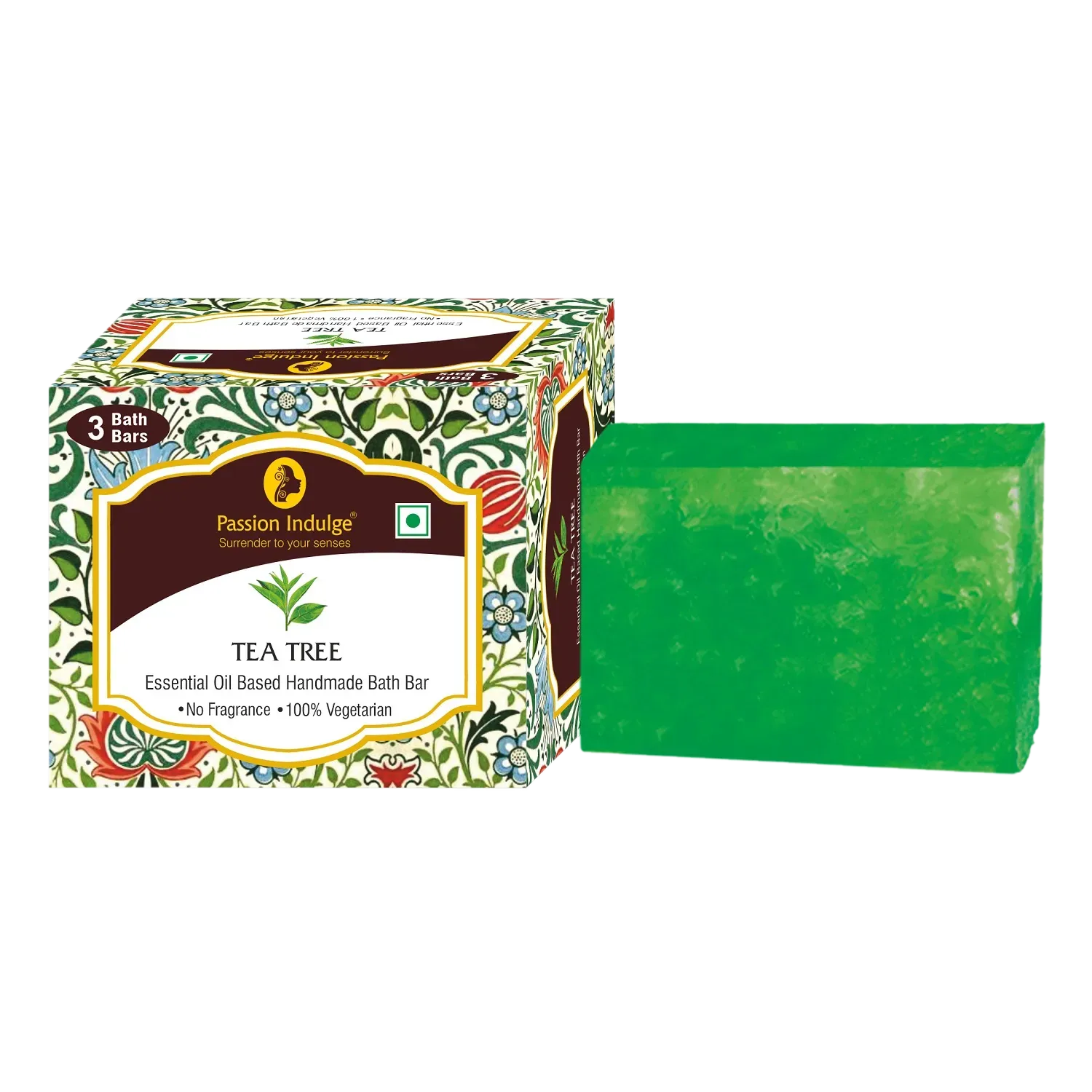 Passion Indulge Tea Tree Handmade Bath Bar Soap - Pack Of 3 (100Gm Each)