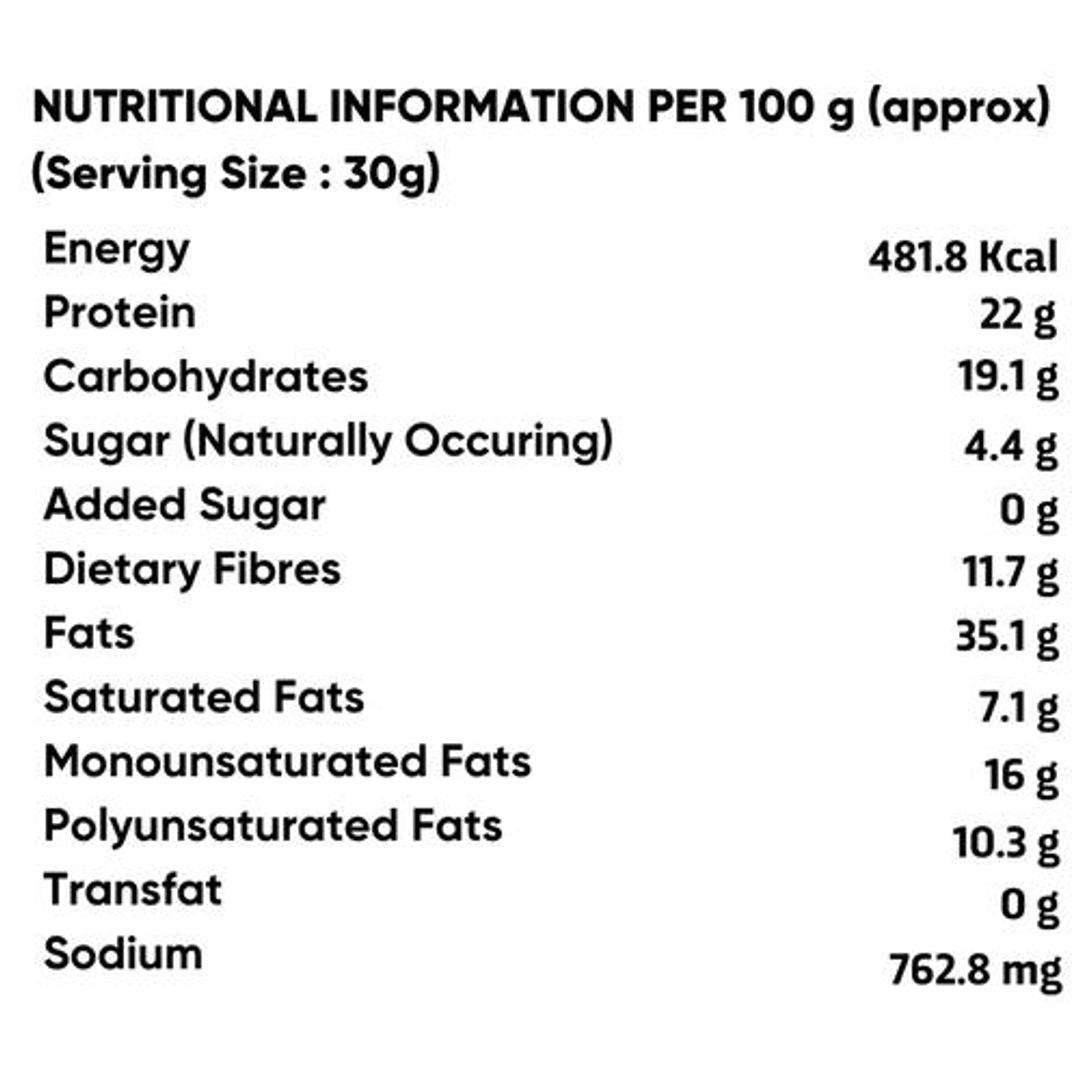 Peanuts (87.5%), Chilli powder (8%), Garlic Powder (2.3%), Rock Salt, Turmeric, Rosemary Extract.